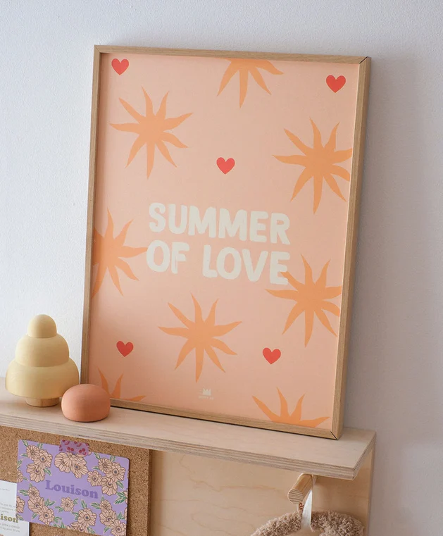 L’affiche “Summer of Love” diffuse une ambiance rétro et solaire. Un vent d’amour et de douceur souffle sur votre déco estivale !