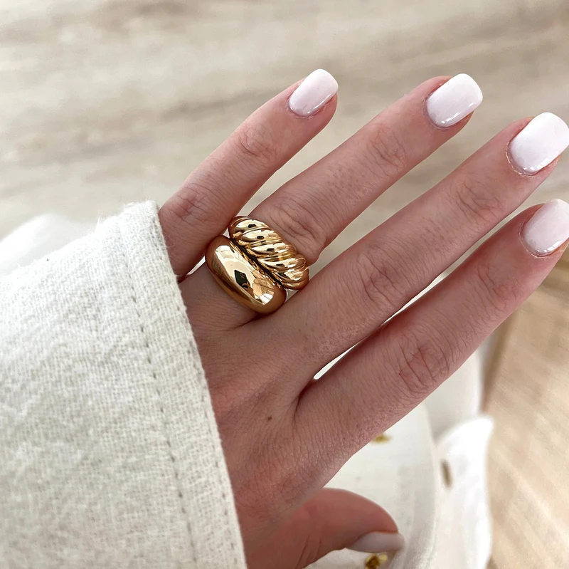 - Si vous souhaitez cumuler les bagues sur le même doigt, partez sur une taille au dessus de votre taille habituelle.
