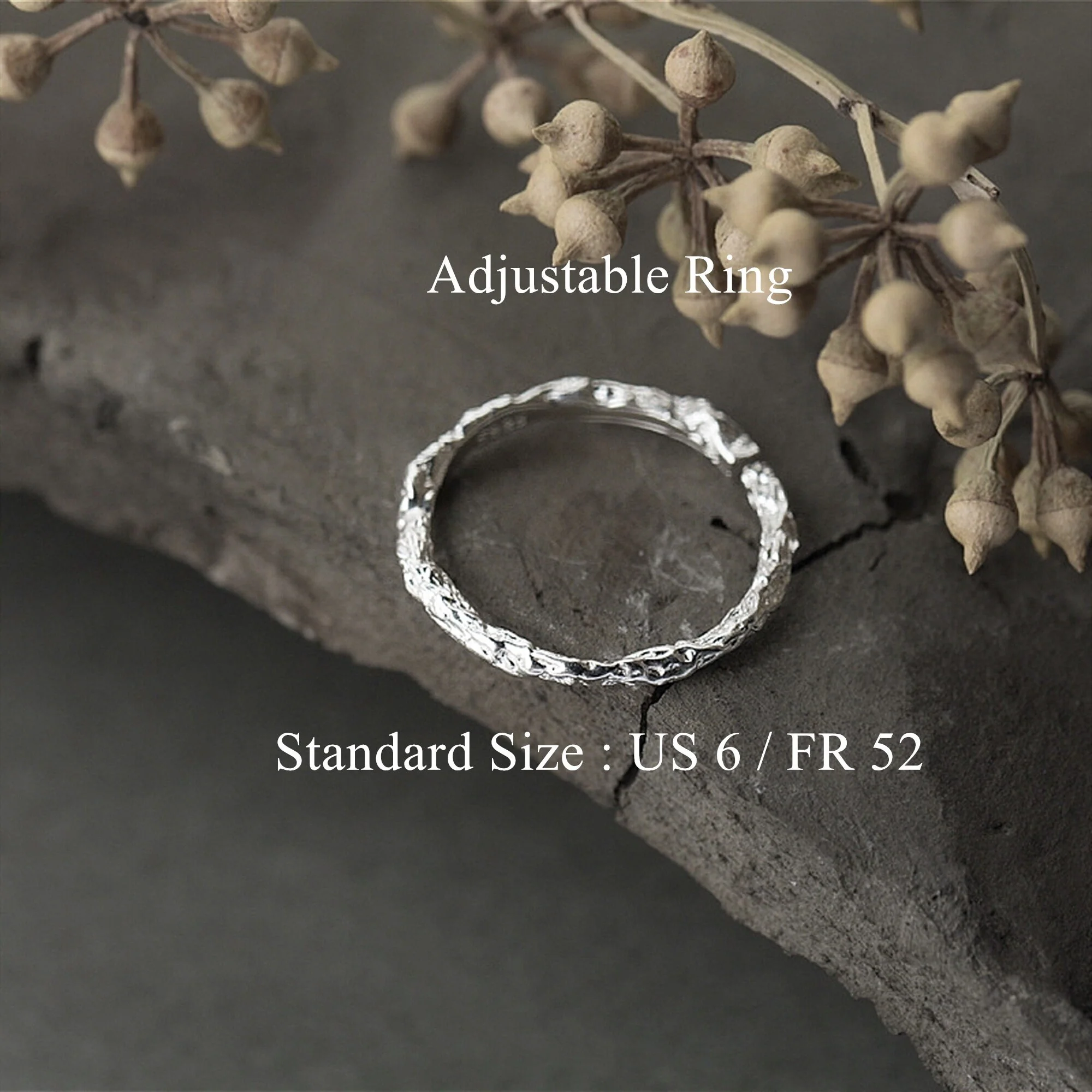 Découvrez cette bague fine et élégante en argent martelé, dotée d’un anneau ajustable qui s’adapte à toutes les tailles de doigts. Ajoutez une touche de style à votre tenue avec cette bague au design unique et polyvalent. Idéale pour toutes les occasions, elle sera un ajout précieux à votre collection de bijoux.