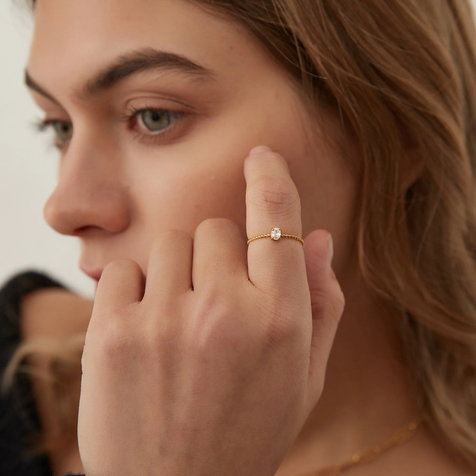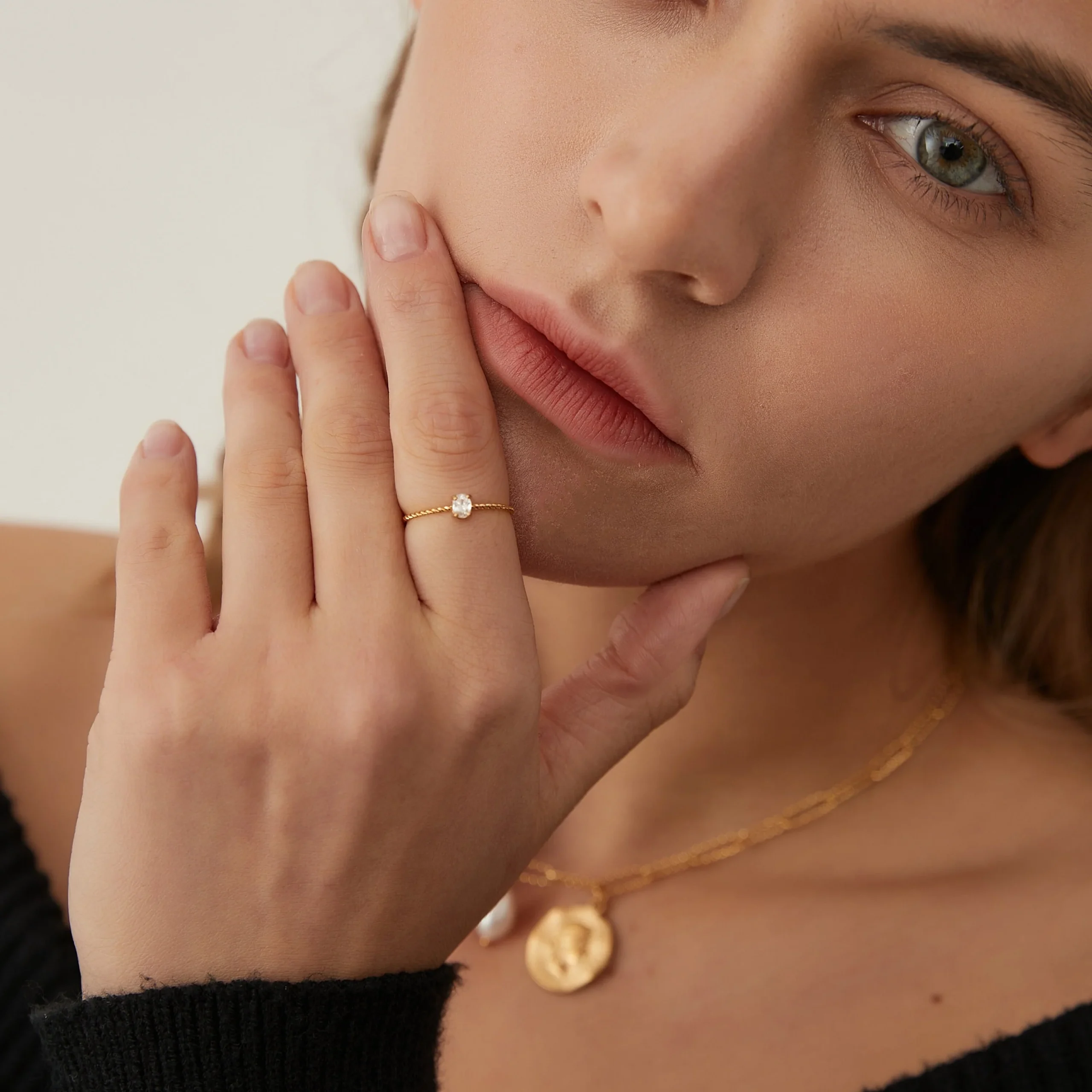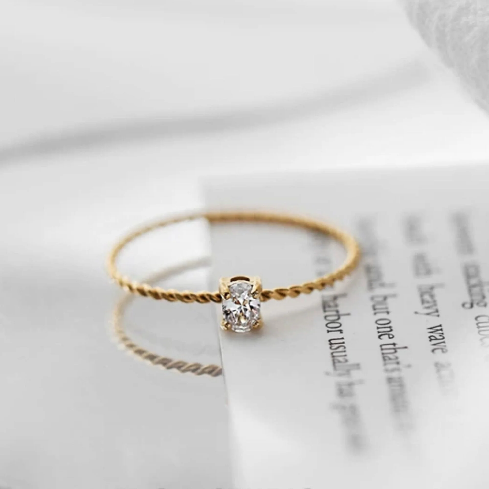 Cette bague est ornée d’un zirconium blanc oval en acier inoxydable plaqué or avec trois couleurs. Vous pouvez porter-en plusieurs ensemble, ou en bague de phalange ou de pouce.