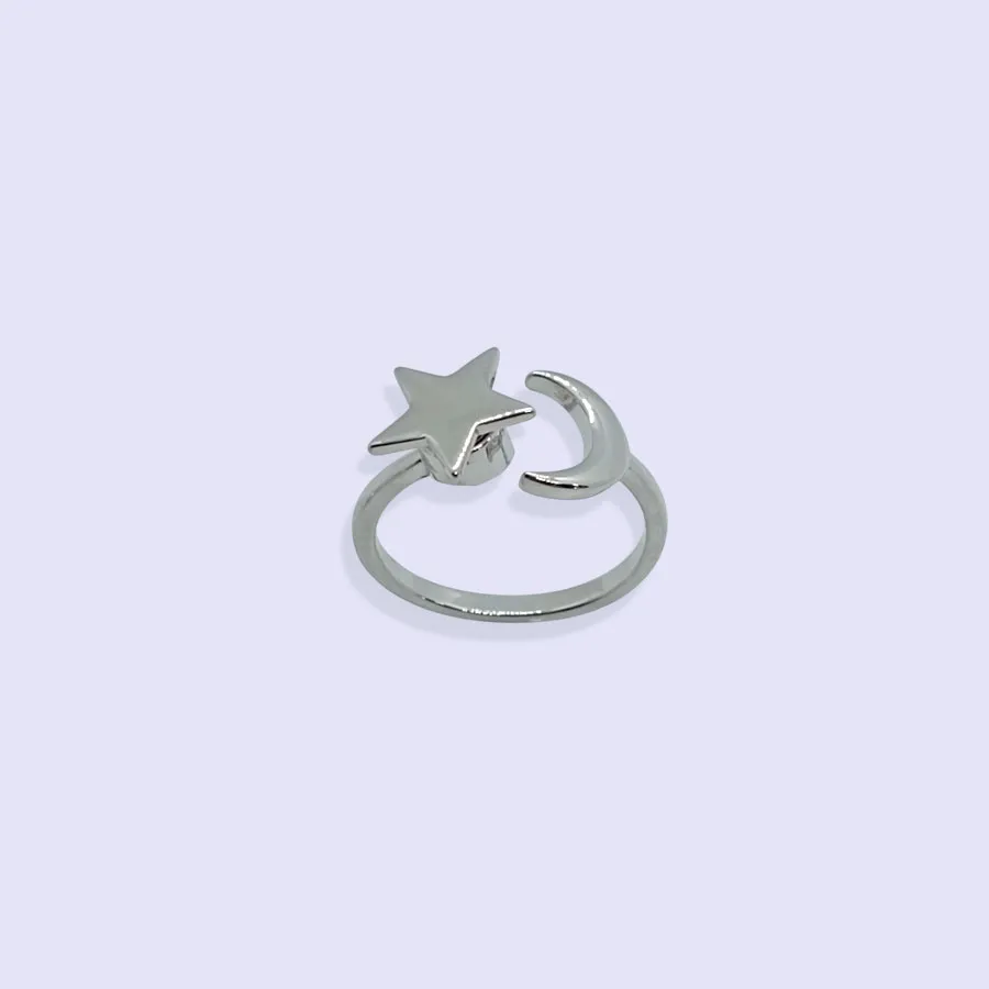 La Bague ANTI-STRESS LUNE ET ETOILE est ouverte et ajustable. Elle peut donc s’adapter aux tailles de doigts les plus courantes (de la taille 50 à la taille 60).