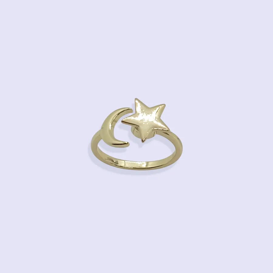 Bague ANTI-STRESS LUNE ET ETOILE redimensionnable en acier inoxydable doré ou argenté, anneau tournant design étoile et lune.