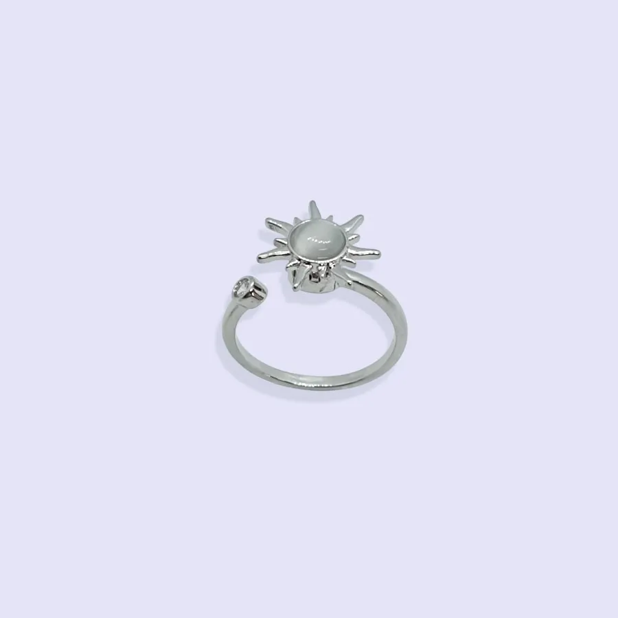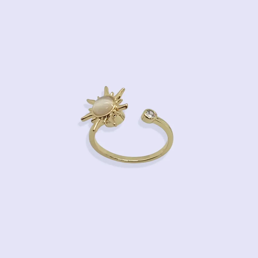 Bague ANTI-STRESS SOLEIL redimensionnable en acier inoxydable doré ou argenté, anneau tournant design soleil et oxyde de zirconium.