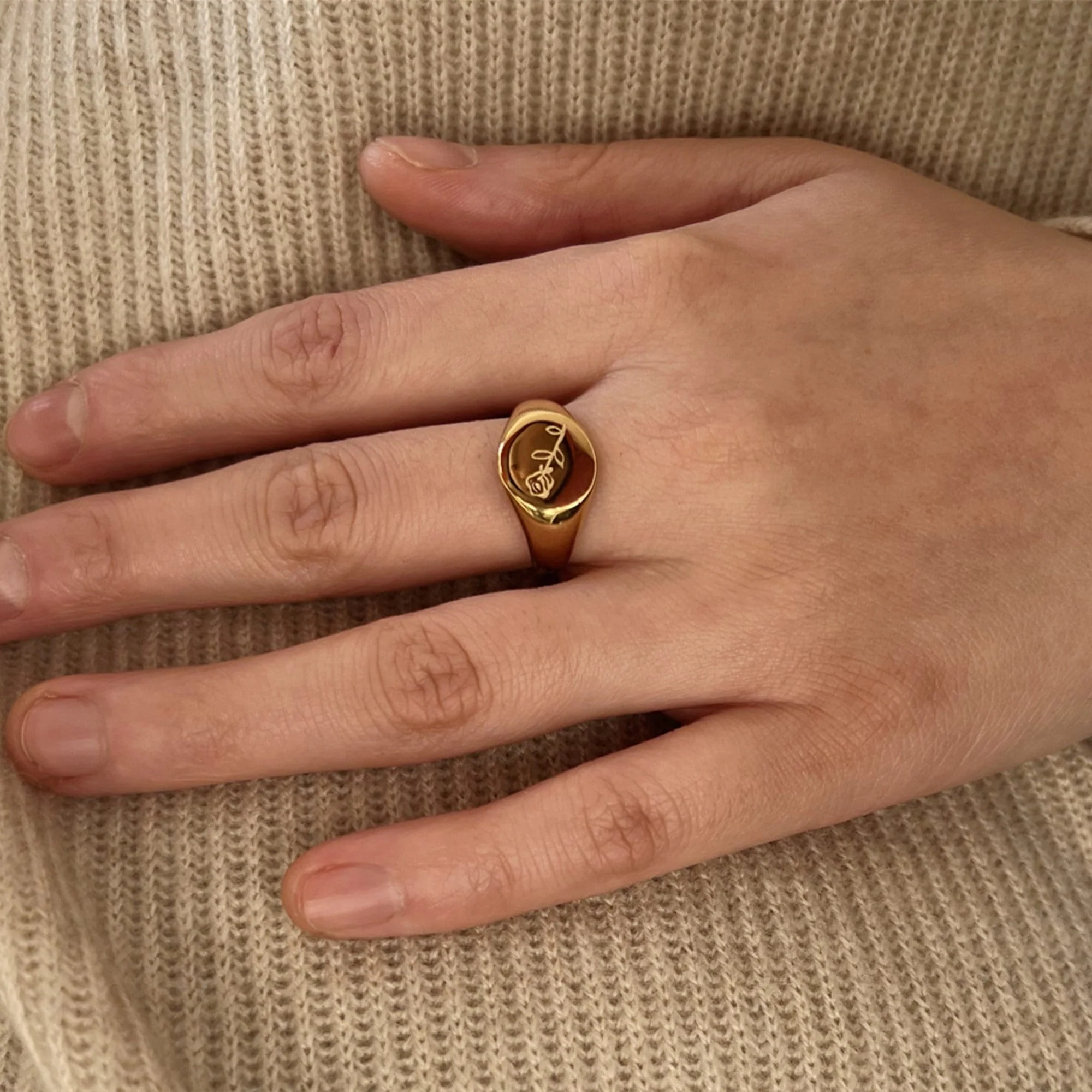 Cette bague chevalier rose est en acier inoxydable plaqué or, élégante et bohème, elle est idéale en superposition avec des bagues plus fines et/ou serties, afin de créer un look différent chaque jour !