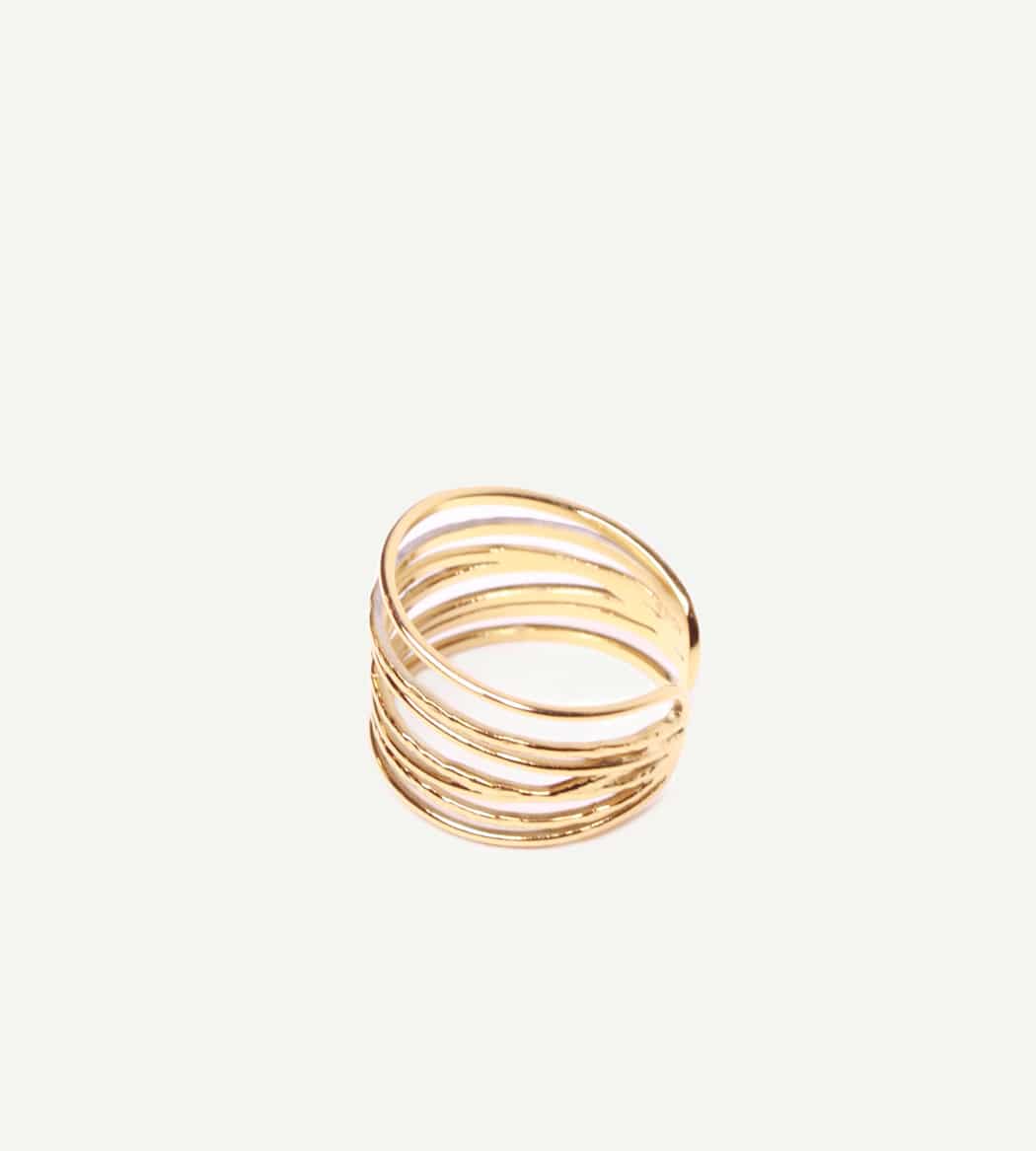 Anneau créateur doré à filaments empilés. Légère et délicate, cette bague se mariera à tous vos styles