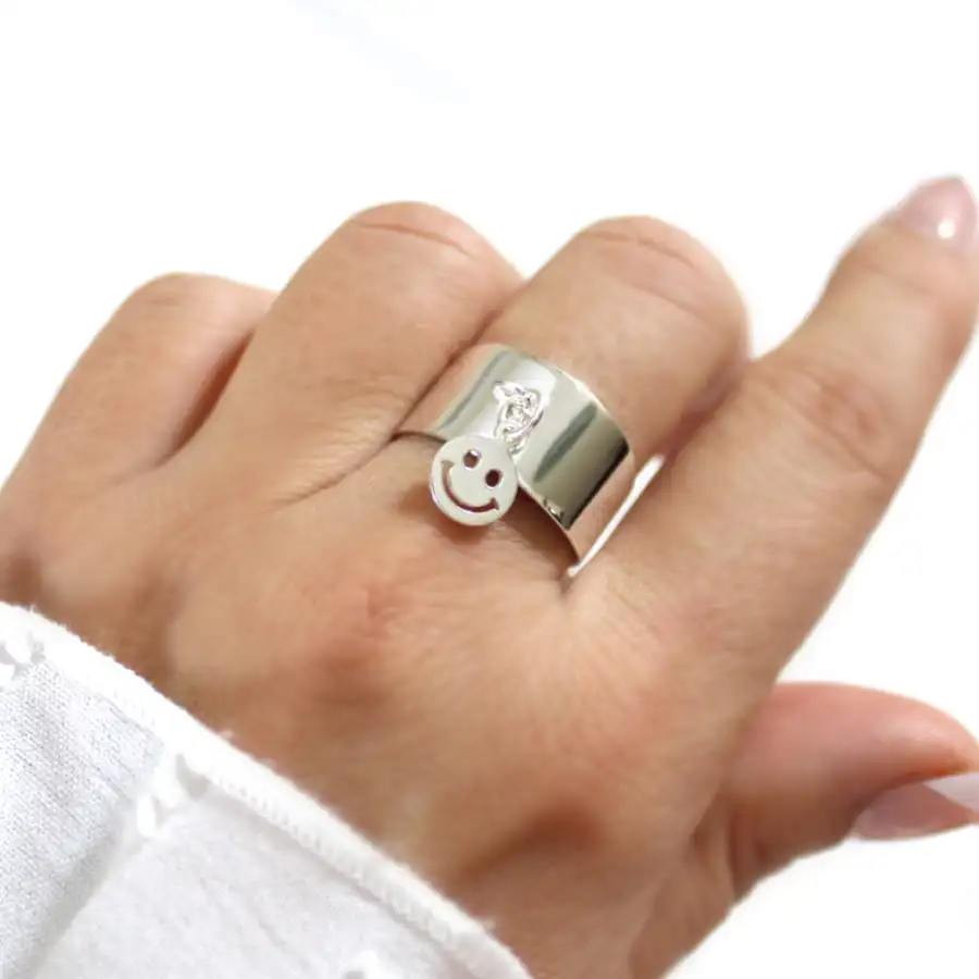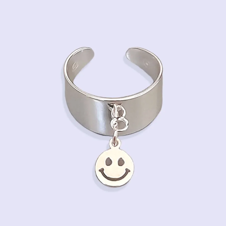 Bague SMILEY ARGENT 925, redimensionnable, décorée d’une breloque smiley.