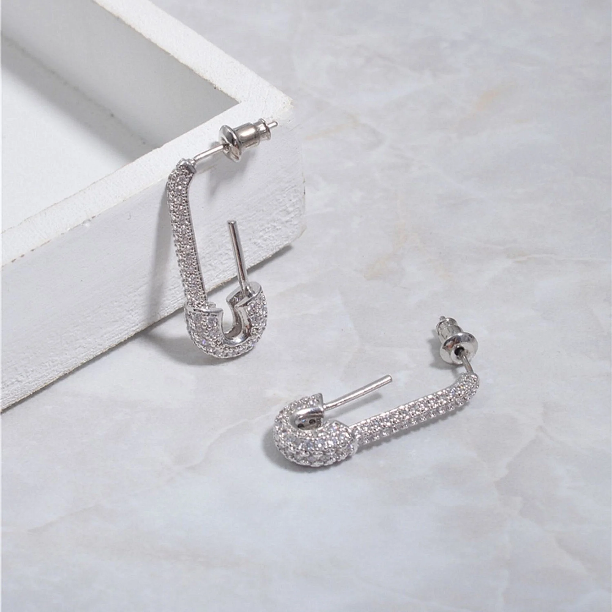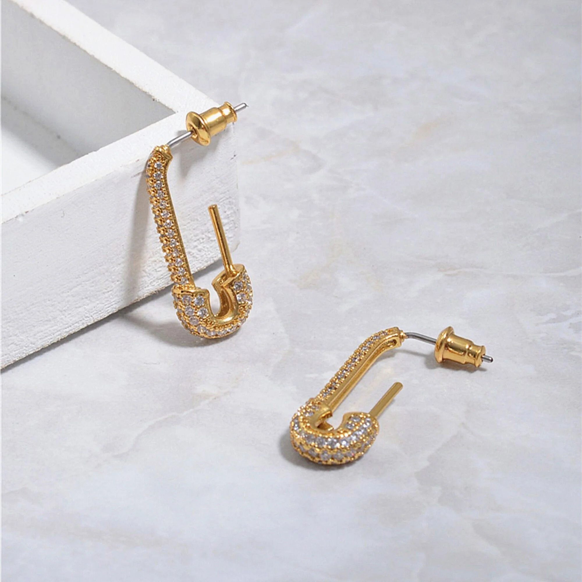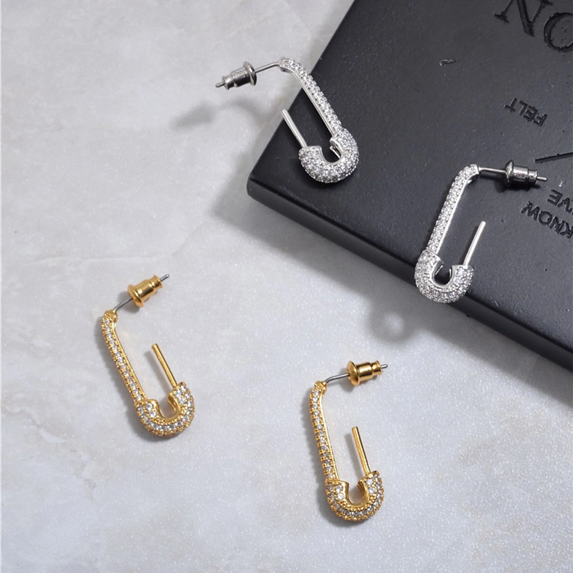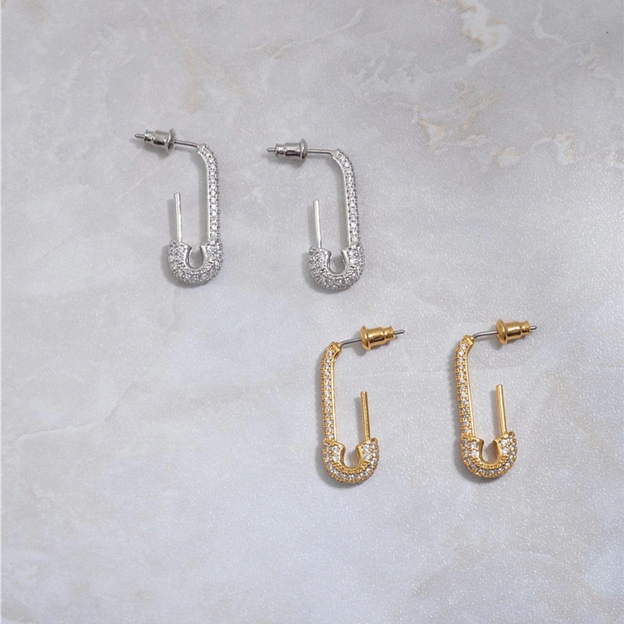 Originales et délicates, ces boucles d’oreilles créoles en forme de épingles à nourrice sont en laiton avec zircon, style rock et minimaliste, elles sont légères à porter tous les jours. Parfait pour toute occasion.