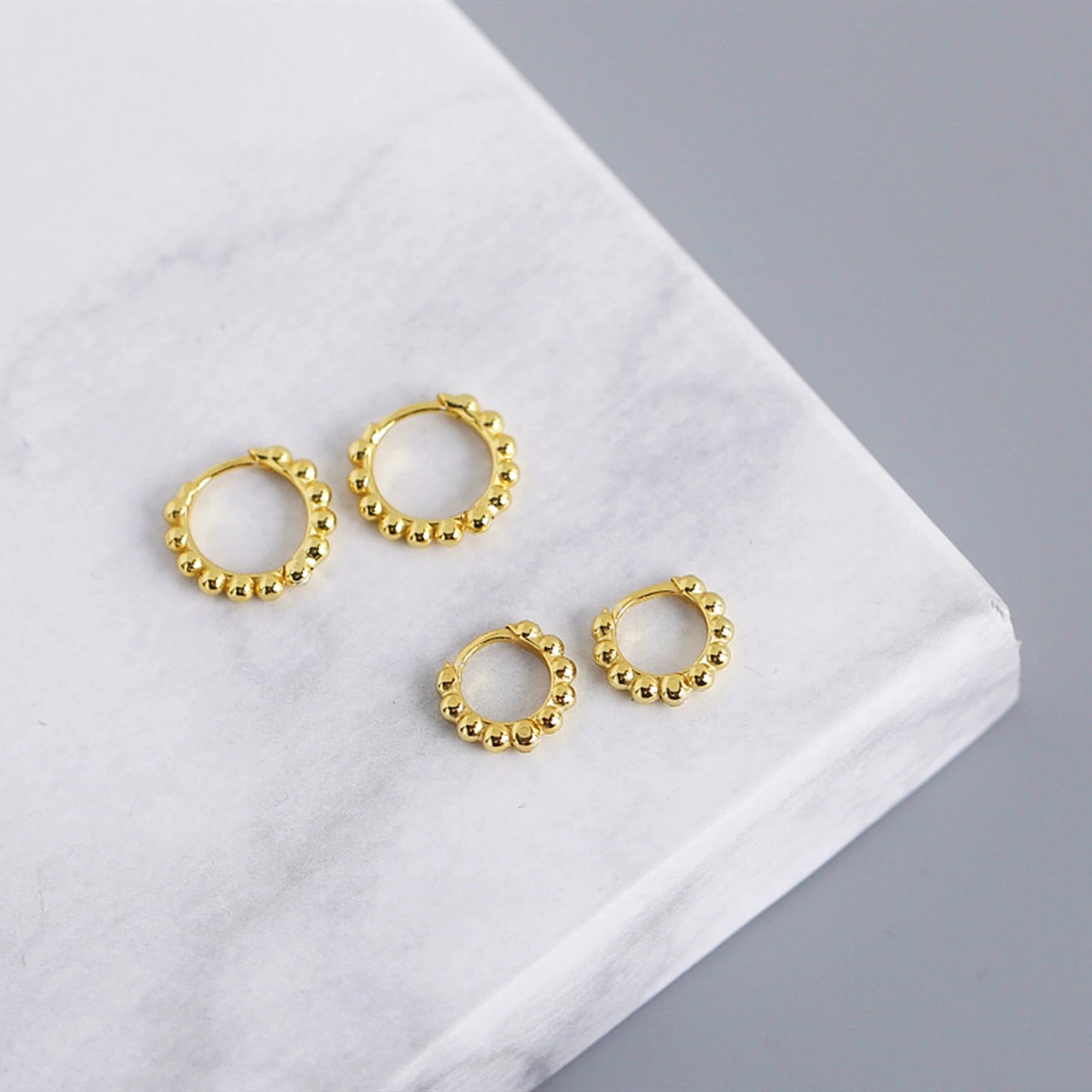Modernes et délicats, ces boucles d’oreilles mini créoles avec des boules sont en argent 925 doré à l’or fin 18 carats, elles sont légères à porter tous les jours. Parfait pour toute occasion, Ils sont aussi pour les filles car ils ne sont pas grands.