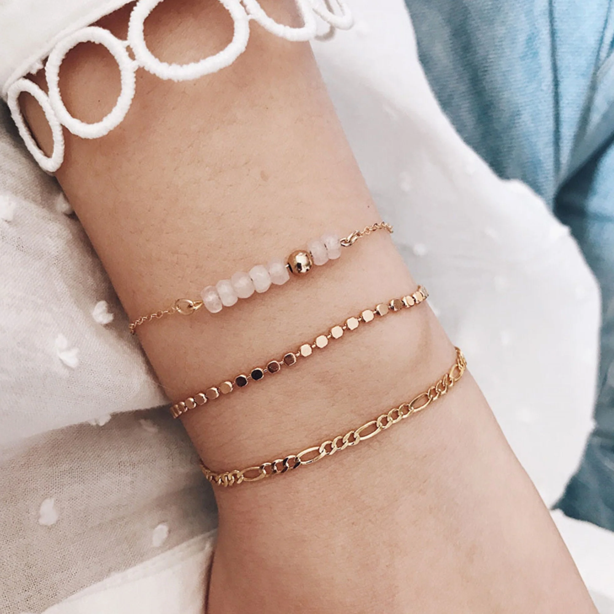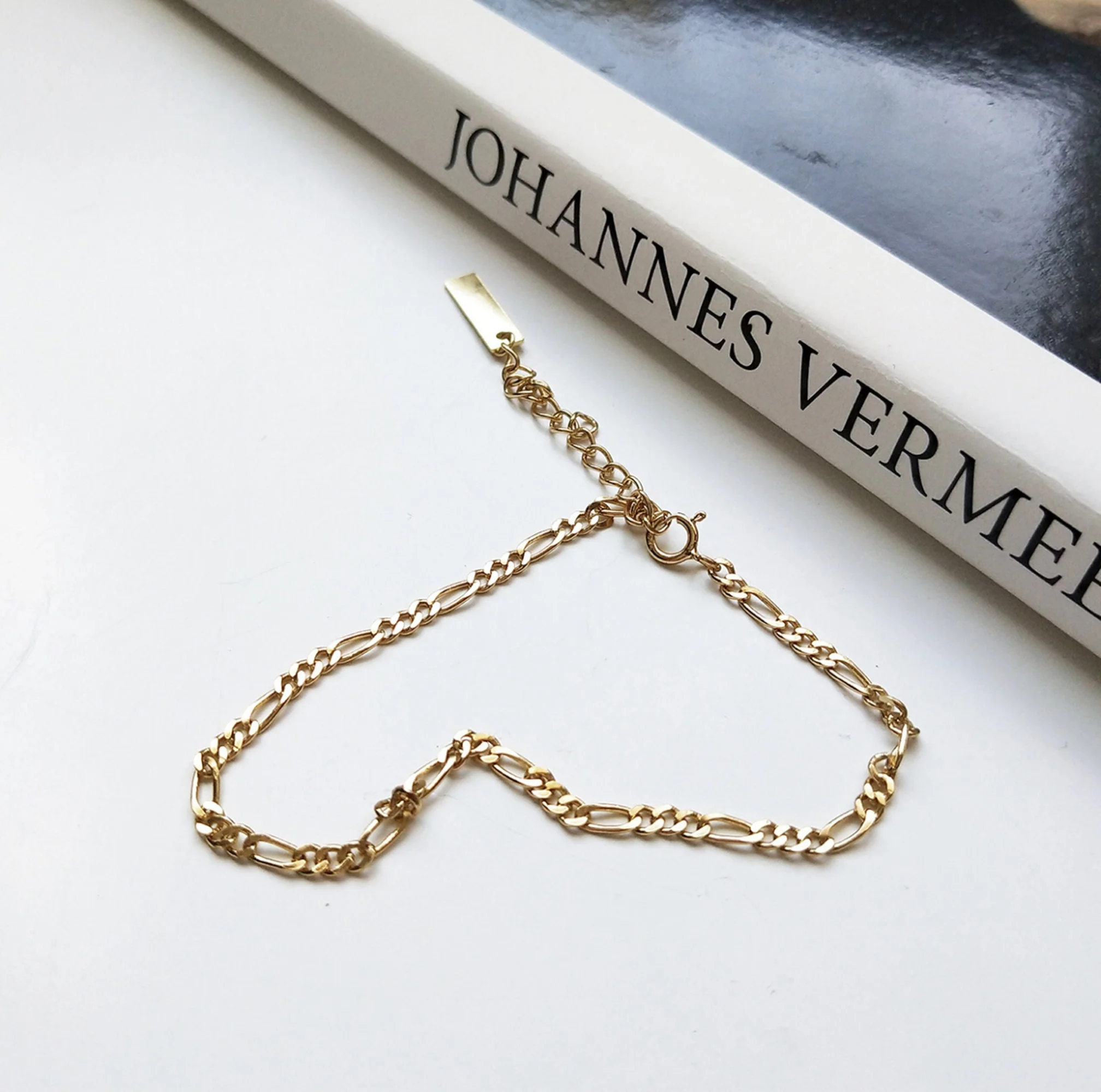 Bracelet Chaîne Gourmette Figaro Or style minimaliste en argent 925 doré à l’or fin, simple et délicat, vous pouvez le porter pour tous les jours seul ou en bracelet de superposition. Cadeau idéal à offrir ou à s’offrir.
