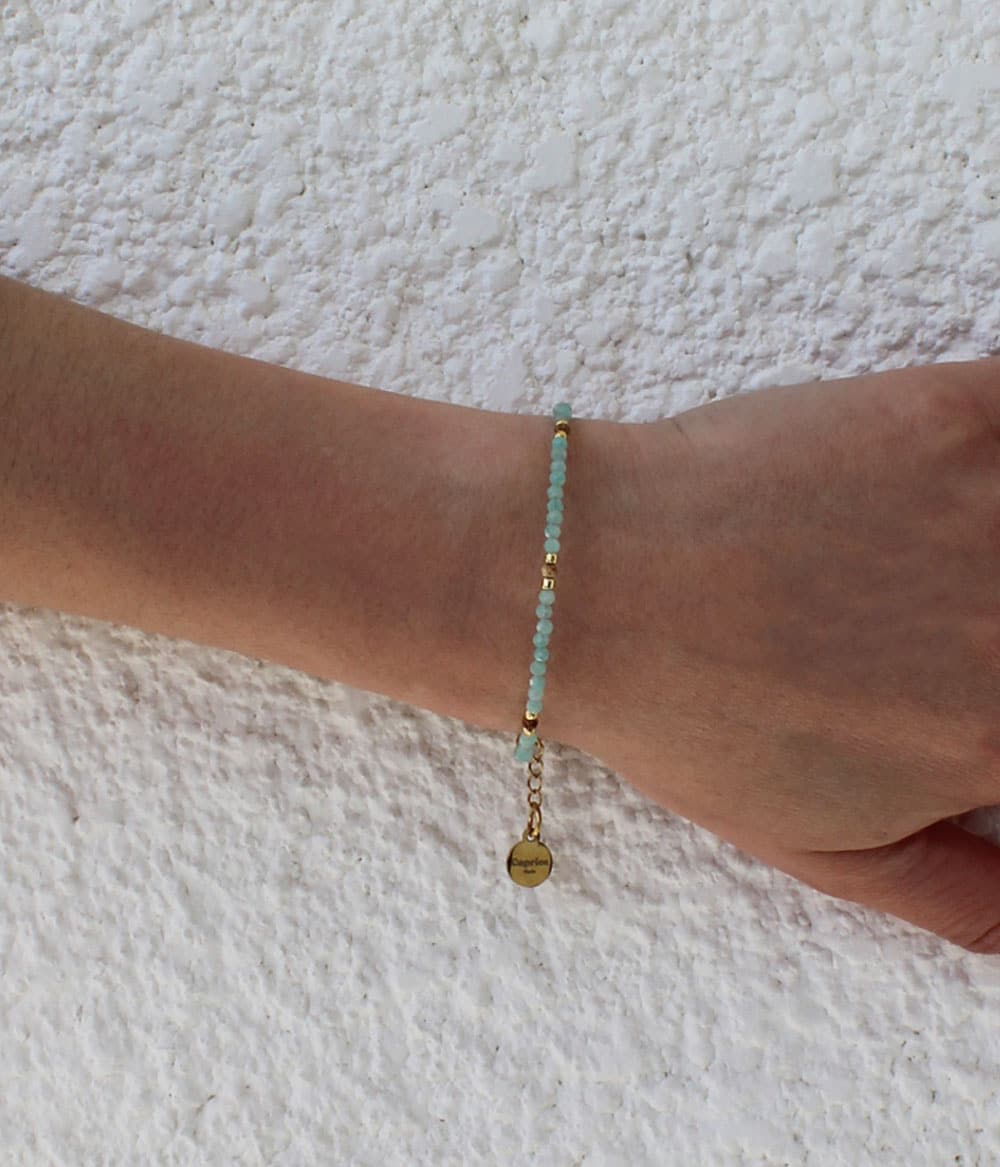Bleu ciel délicat, perles de verre fines, silhouette à peine visible… le bracelet Posada ciel se porte comme un murmure autour du poignet. Une pièce douce et lumineuse, parfaite pour jouer les contrastes avec des bijoux plus forts.