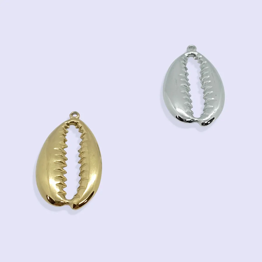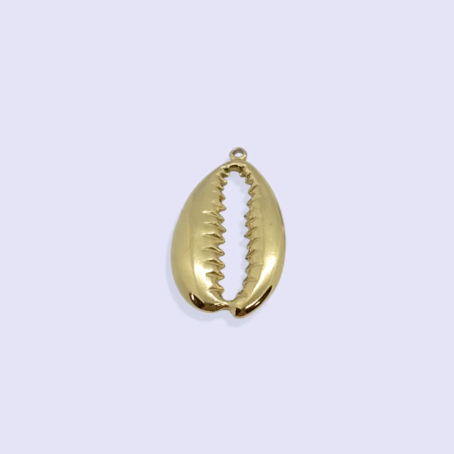 Charm CAURI, breloque en acier inoxydable doré ou argenté, design coquillage cauri. Charm pour bijoux à composer.