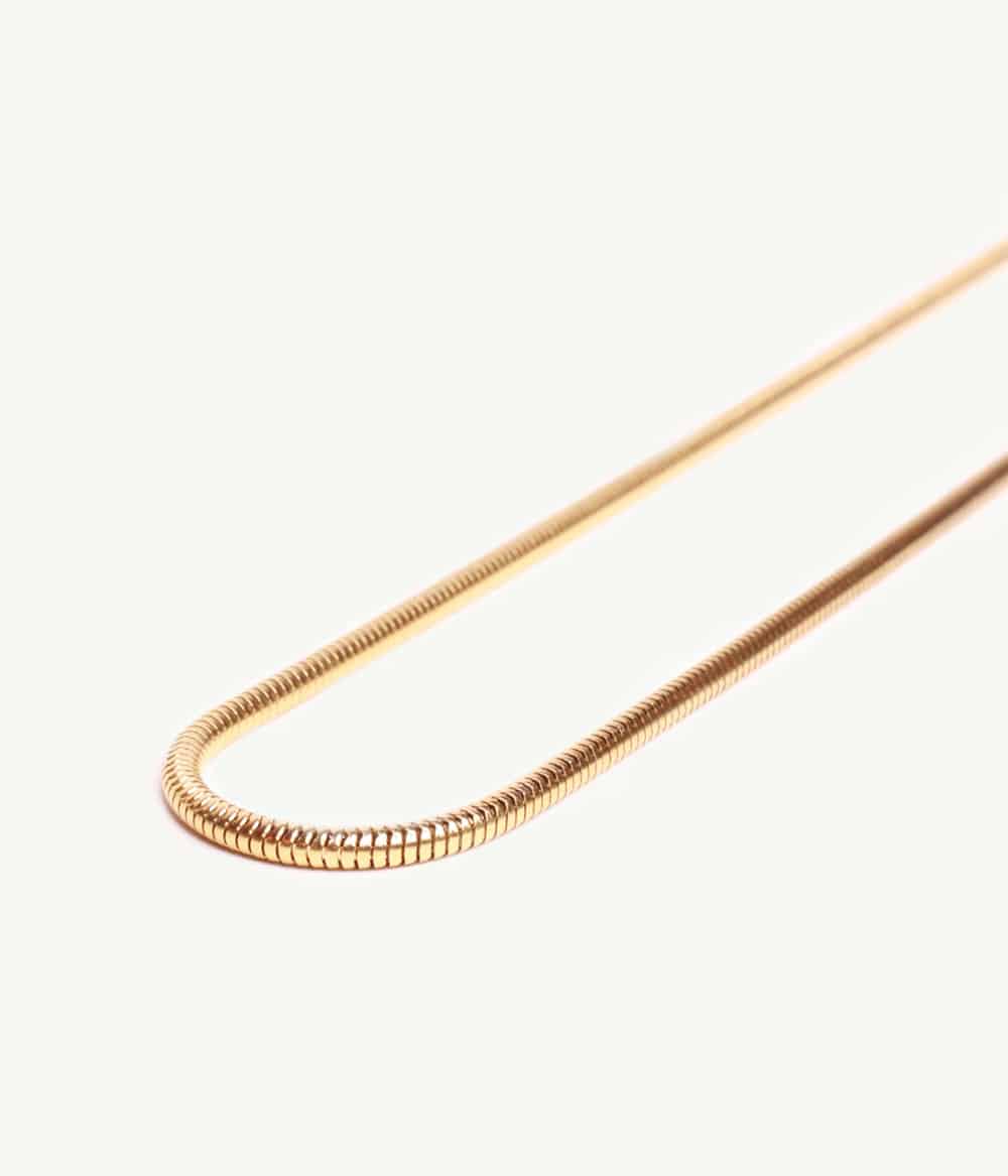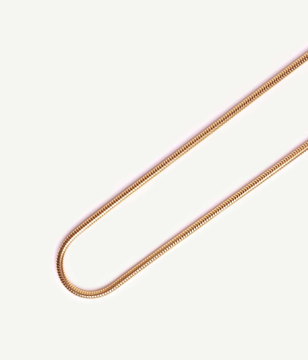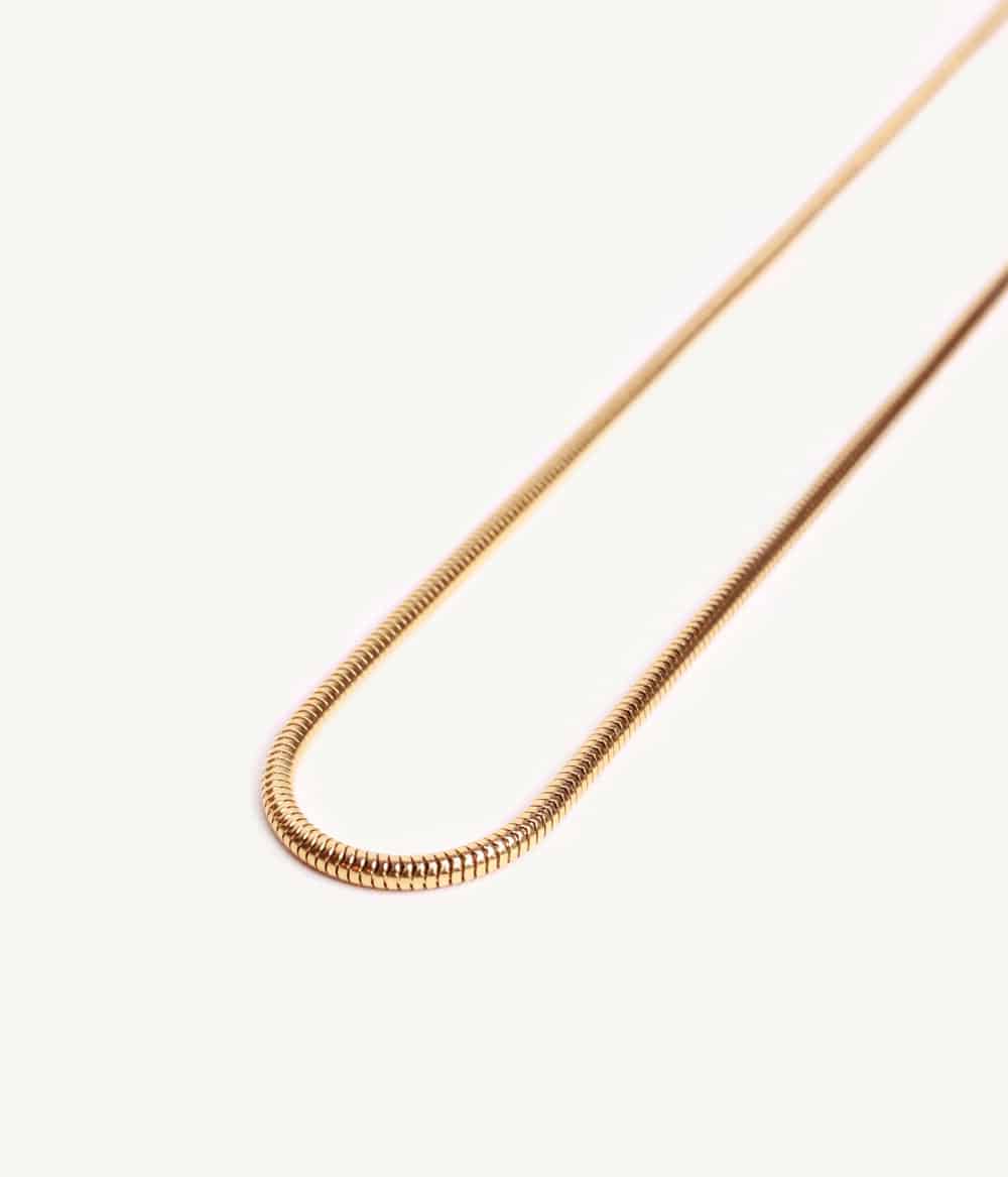 Un collier doré fin à la fois moderne et intemporel avec sa maille serpent ronde, d’inspiration vintage, à associer avec plusieurs chaînes.