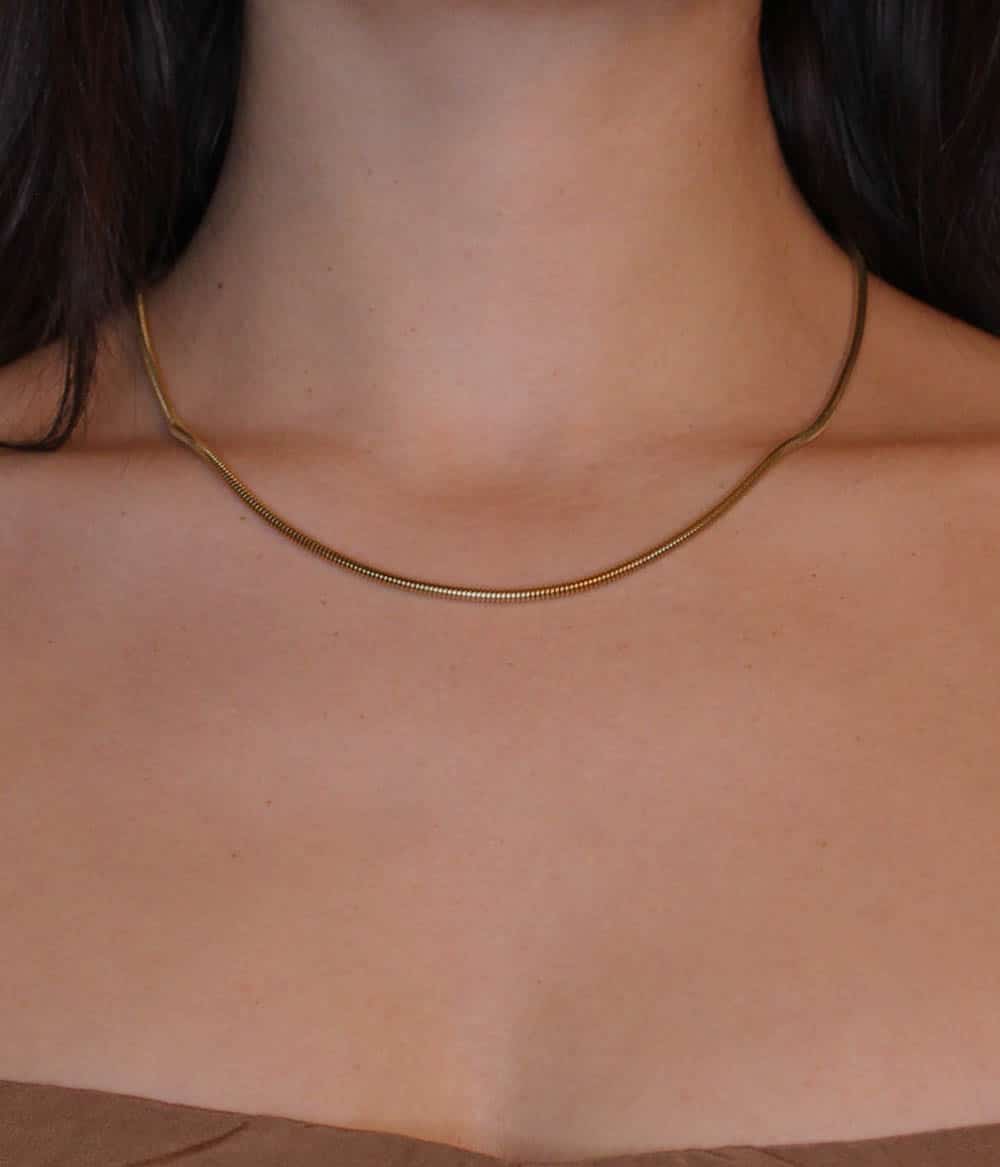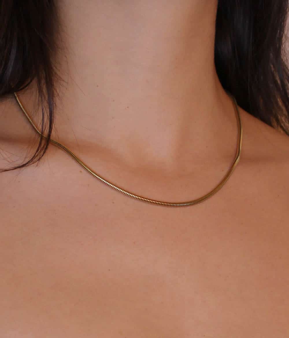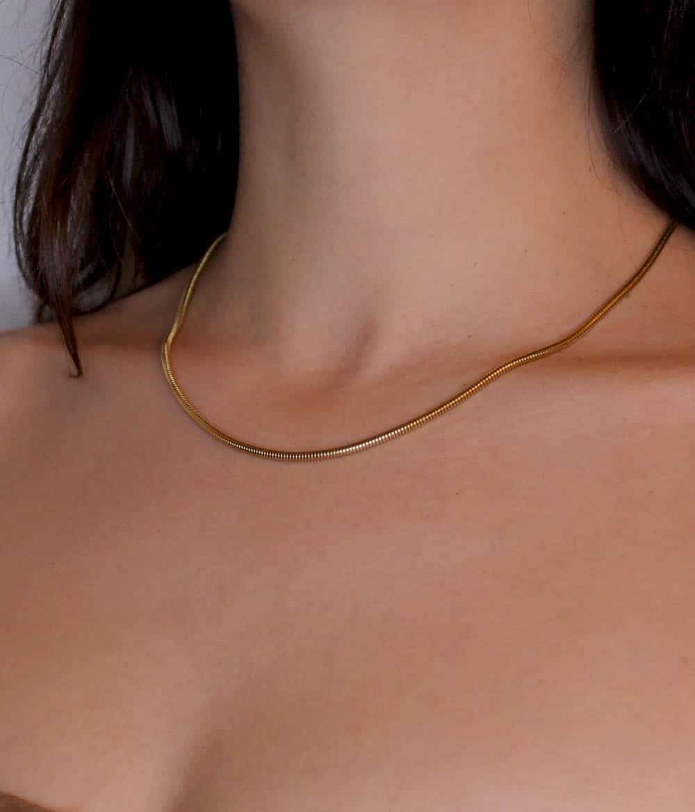 Un collier doré fin à la fois moderne et intemporel avec sa maille serpent ronde, d’inspiration vintage, à associer avec plusieurs chaînes.