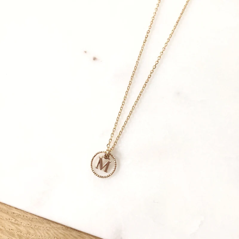 - Pendentif cercle facetté 10mm + initiale au choix montés sur une chaîne classique