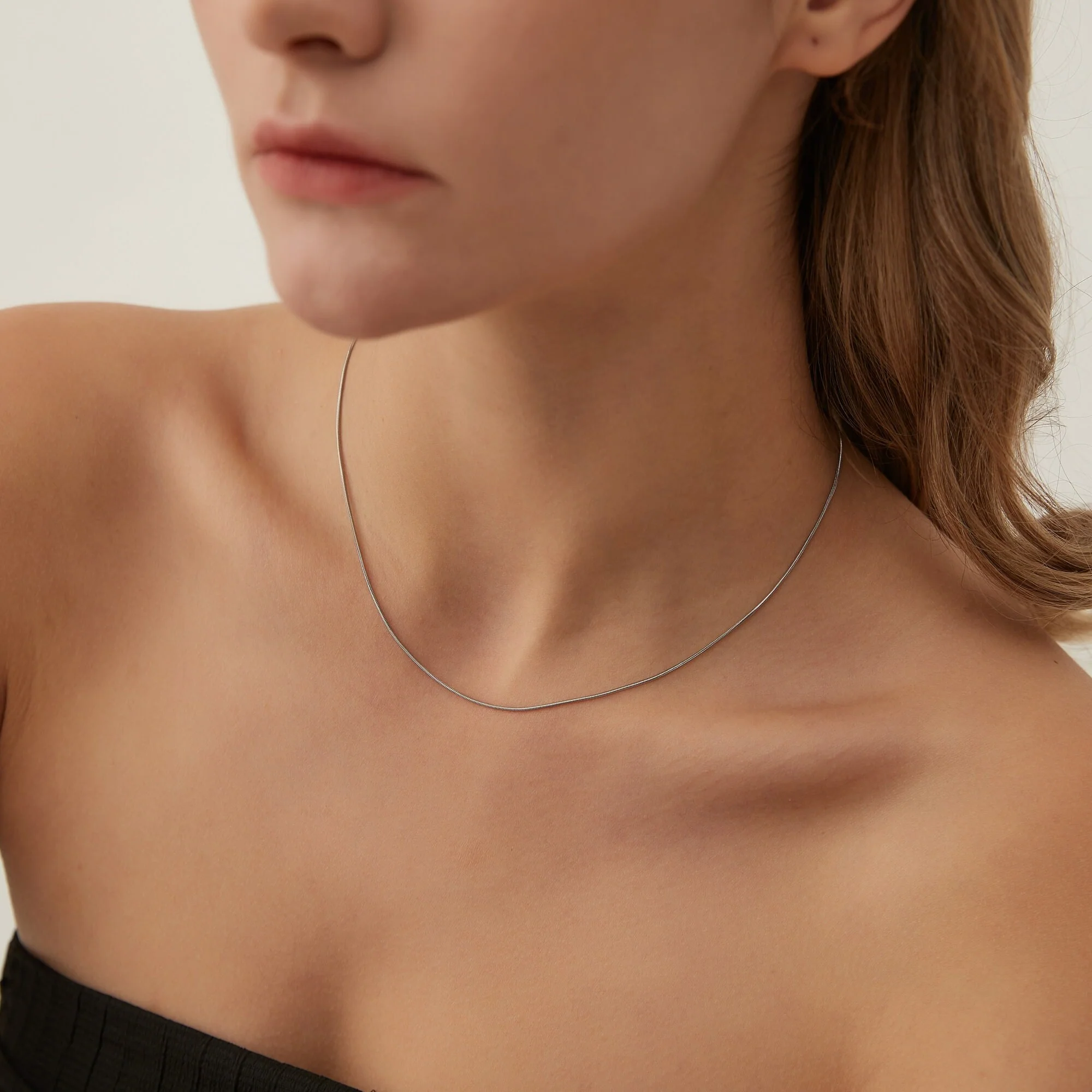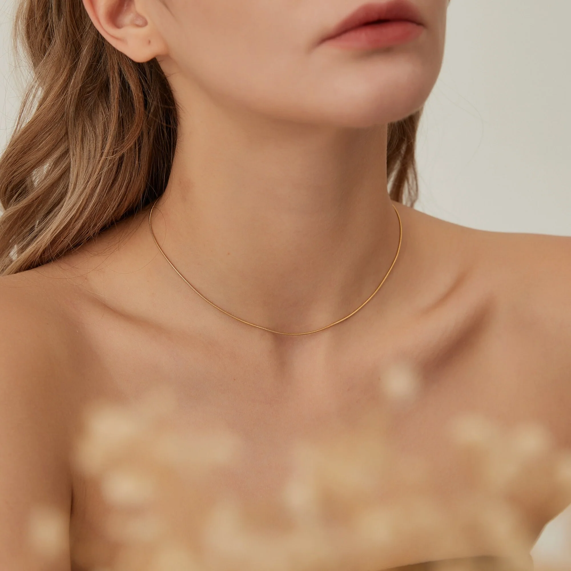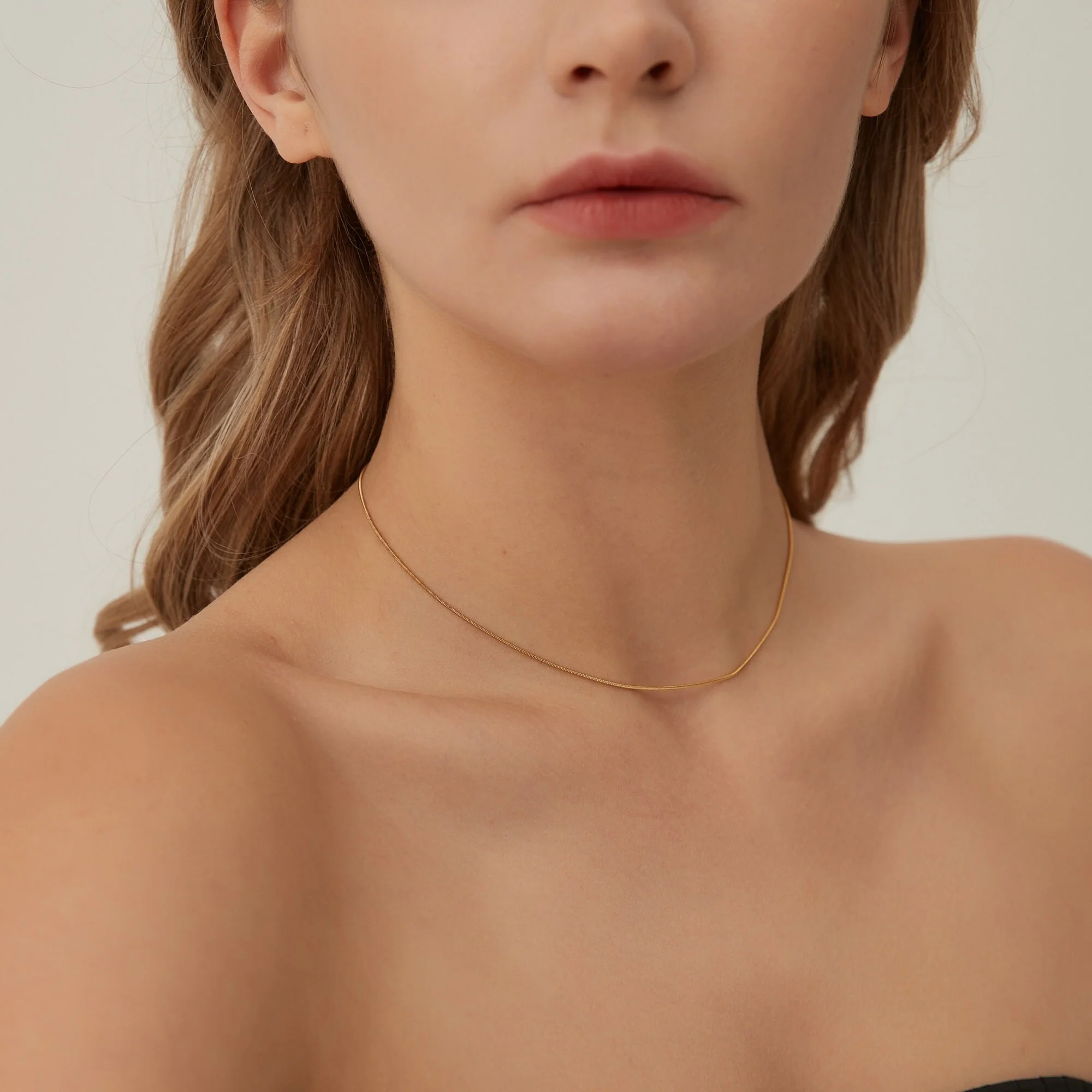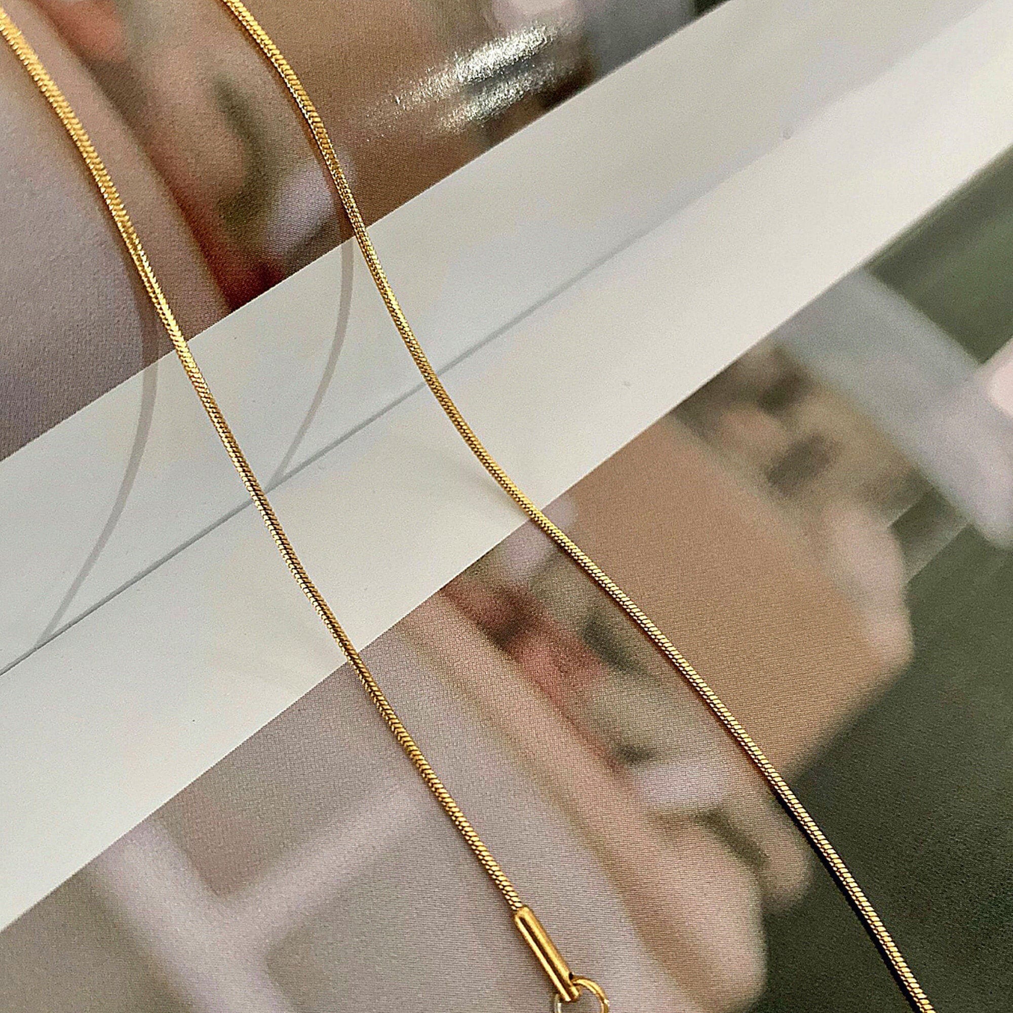 Fin et délicat, Ce joli collier chaîne ras de cou type serpentine est en acier inoxydable plaqué or , Il est parfait pour porter avec nos autres colliers !