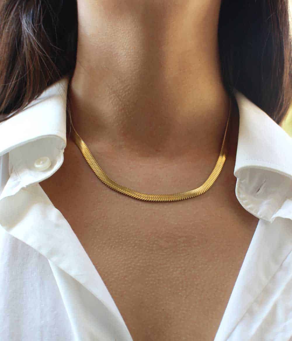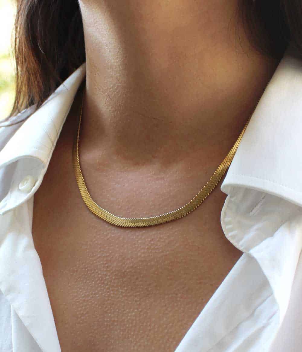Le collier Léto or est un collier créateur au style classique, d’inspiration vintage avec sa maille miroir qui reflète élégamment la lumière. Un bijou indispensable, qui peut se porter avec d’autres chaînes ou seul pour un look statement et qui habillera vos décolletés avec panache.
