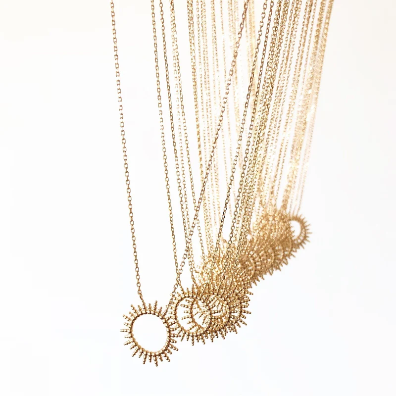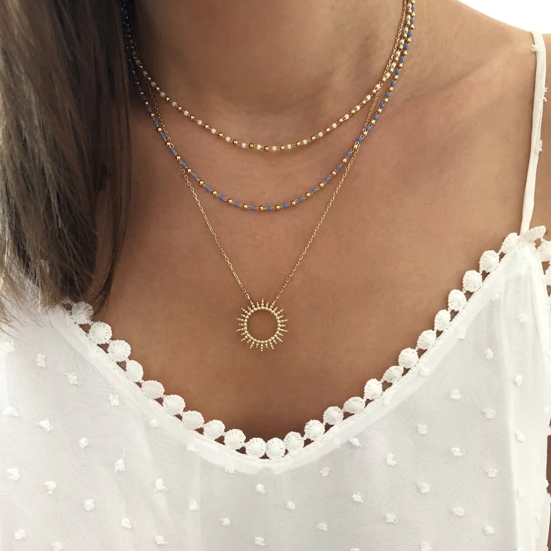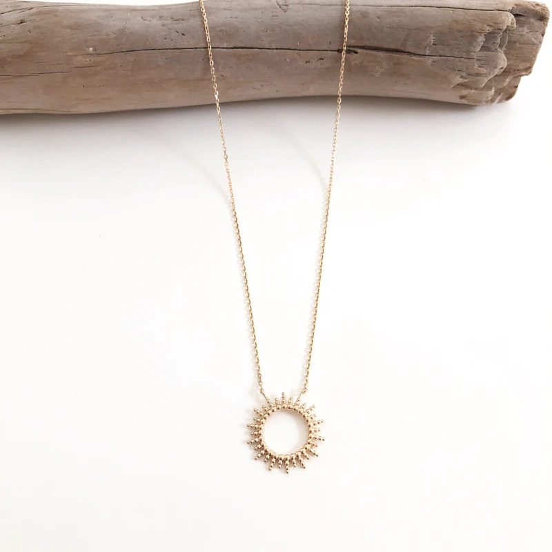 - Pendentif motif soleil (diamètre : 2,2cm) monté sur une chaîne fine
