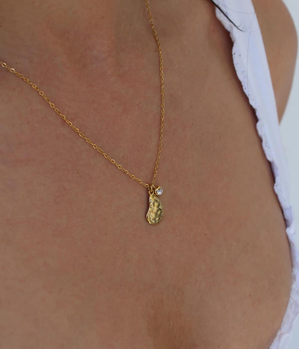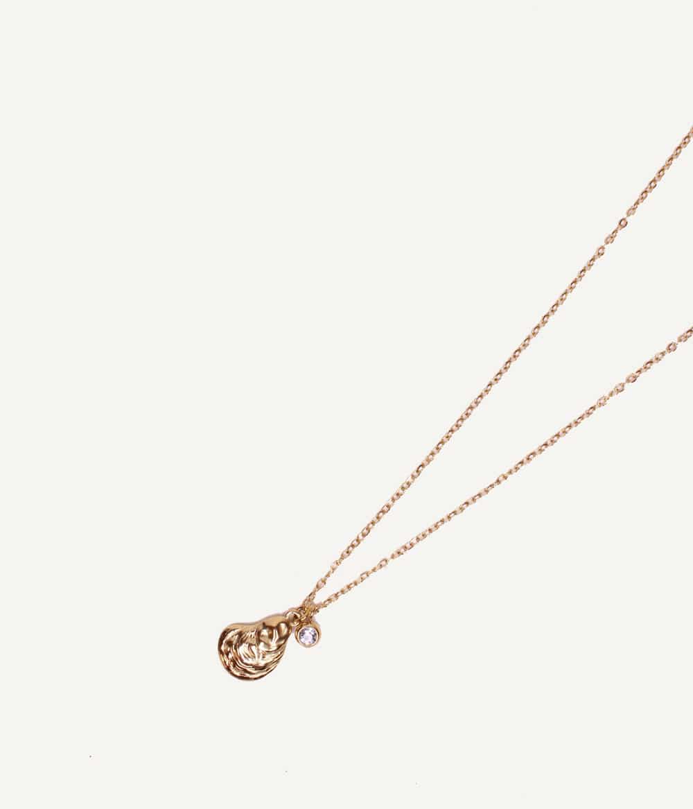 Comme une coquille dorée trouvée sur le sable, le collier Oyster capte la lumière et évoque les reflets de l’été sur la peau. Sa forme ovale, douce et brillante, en fait une pièce solaire à la fois graphique et naturelle. À porter au bord de la mer comme en ville, pour emporter un peu de soleil avec soi.