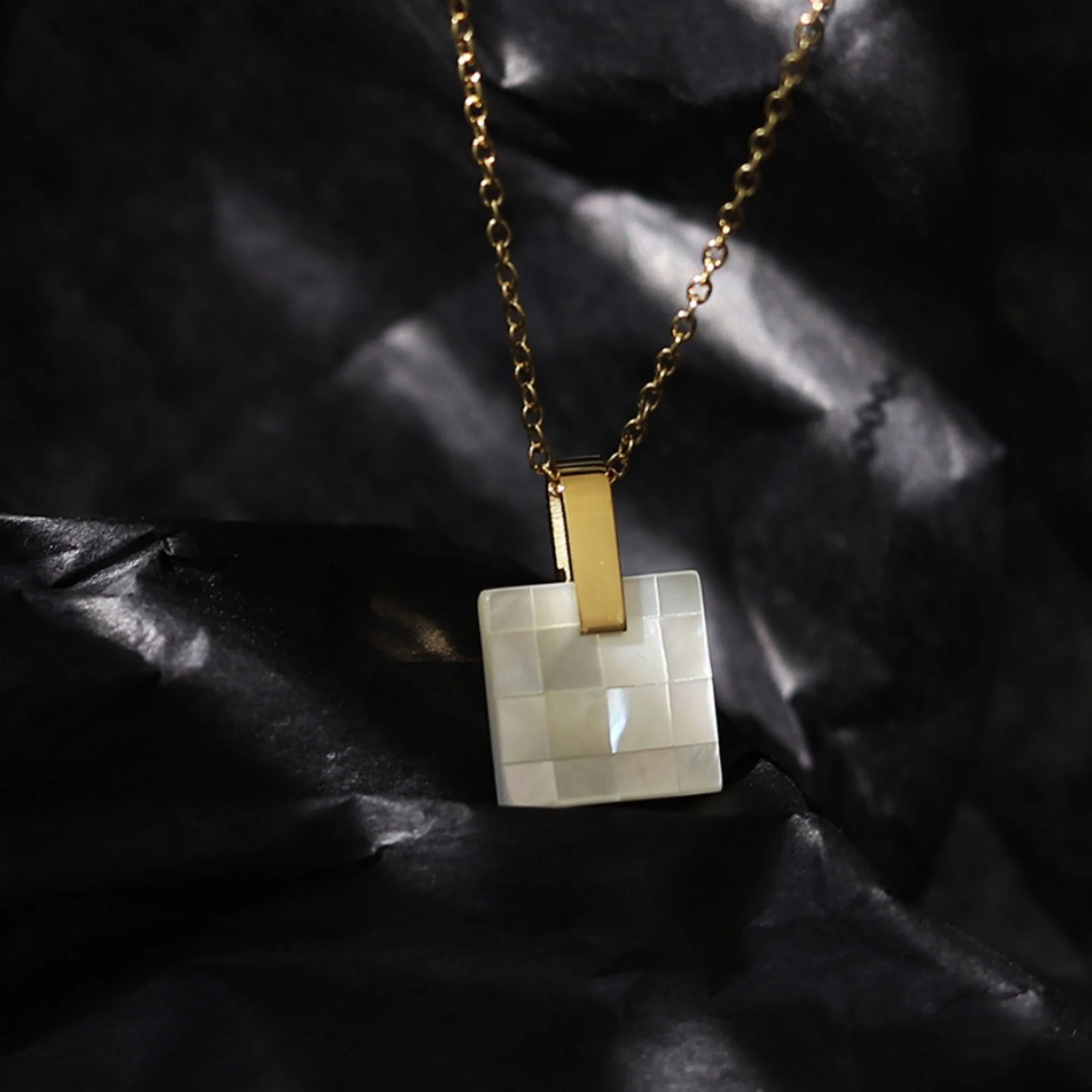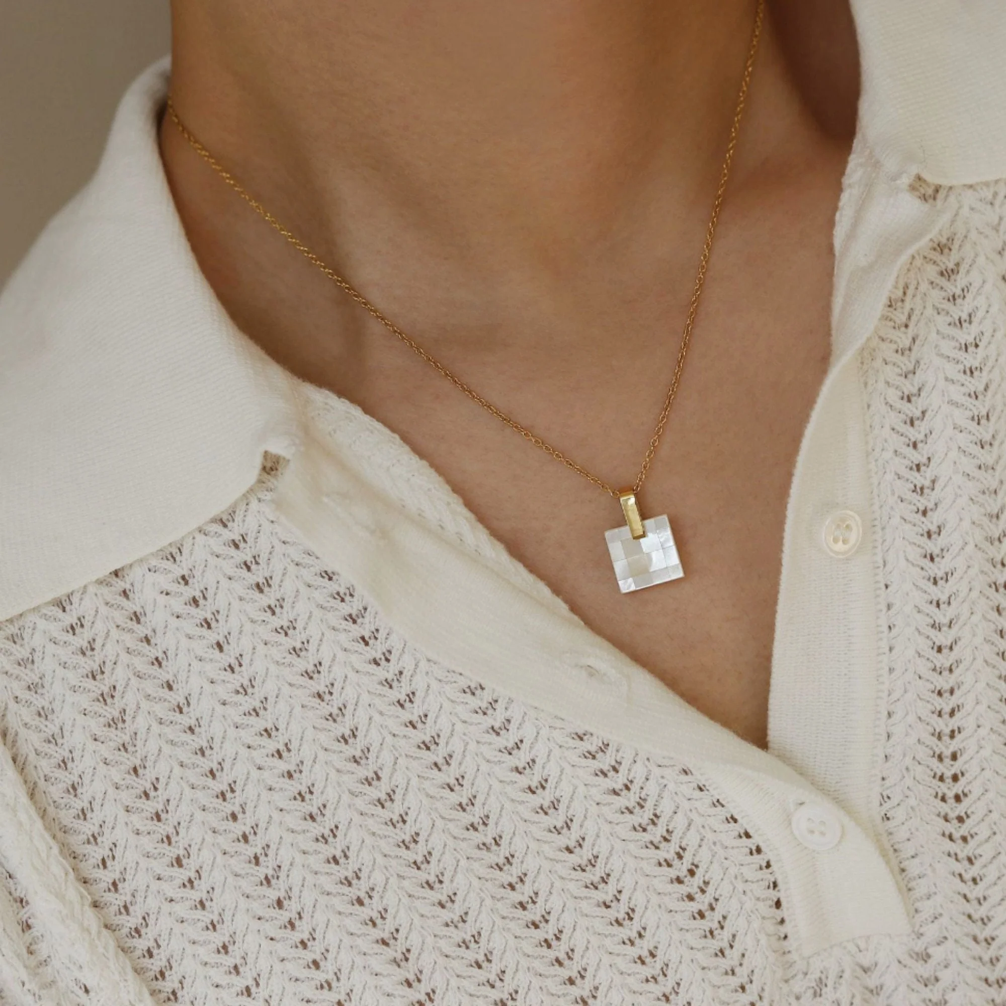 Offrez-vous élégance et sophistication avec notre Collier Pendentif Nacre Blanche Carrée Mosaïque. Fabriqué avec de la nacre blanche de qualité, ce collier ajoutera une touche de finesse à toutes vos tenues. Avec sa forme carrée unique et sa mosaïque méticuleusement assemblée, ce bijou est un véritable chef-d’œuvre à porter fièrement.