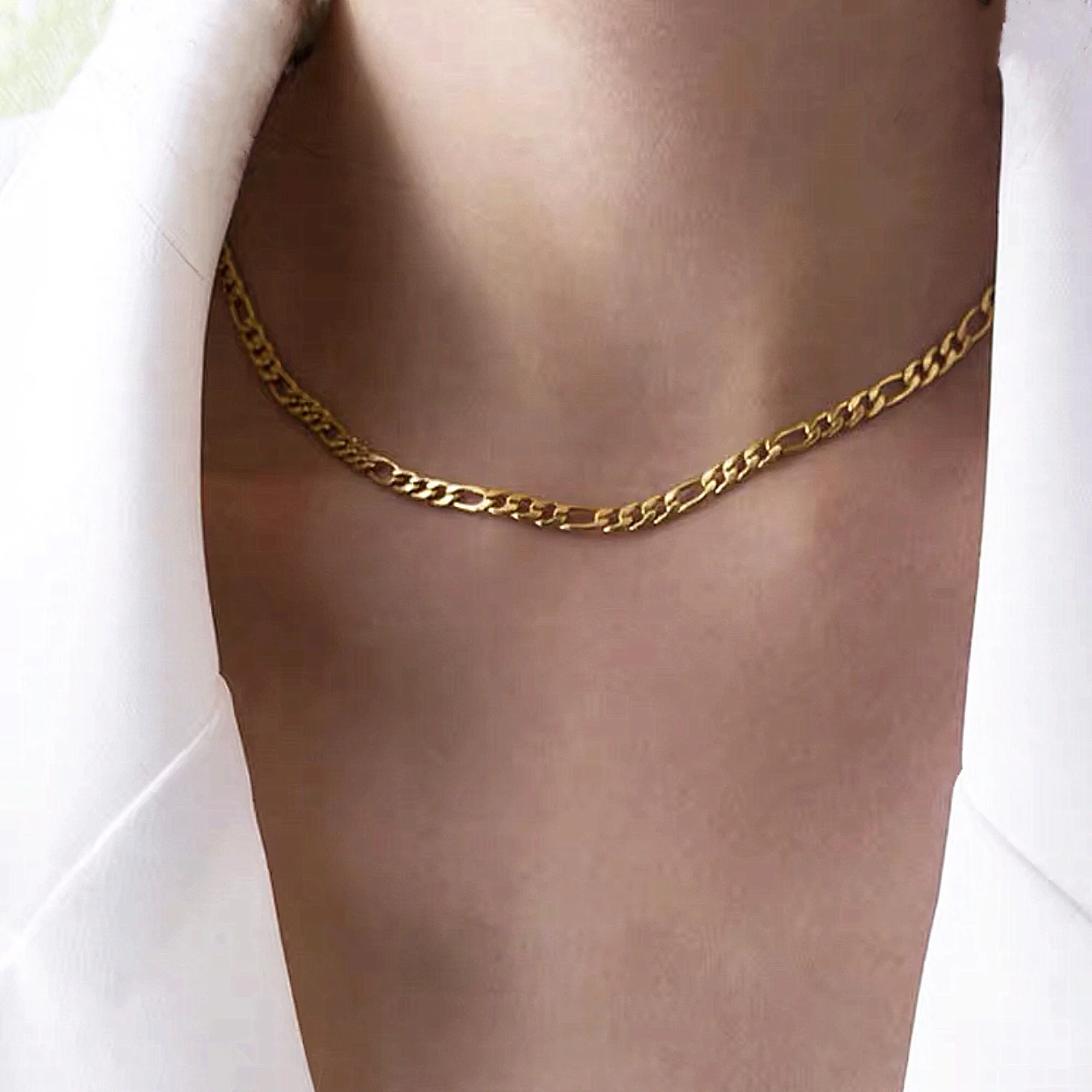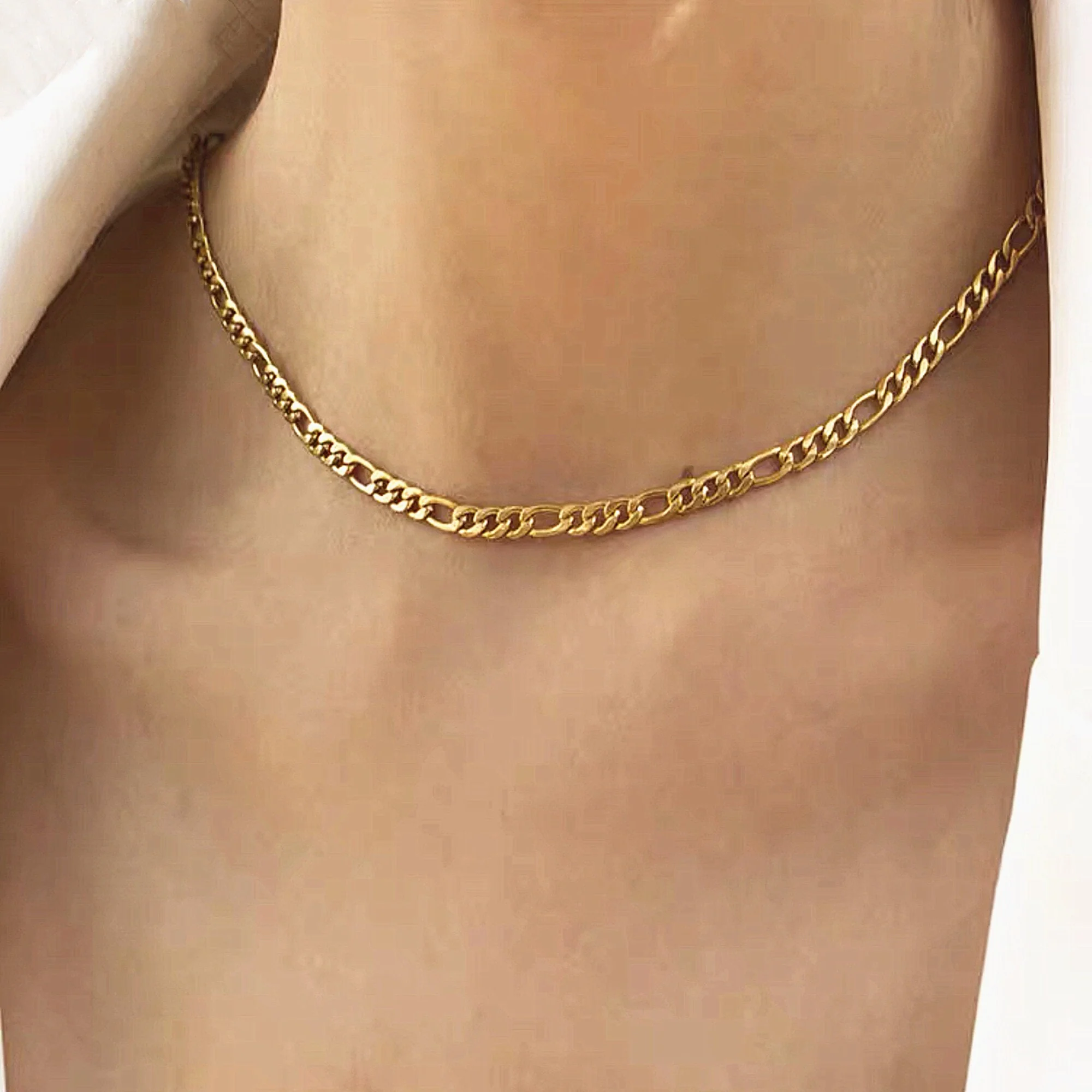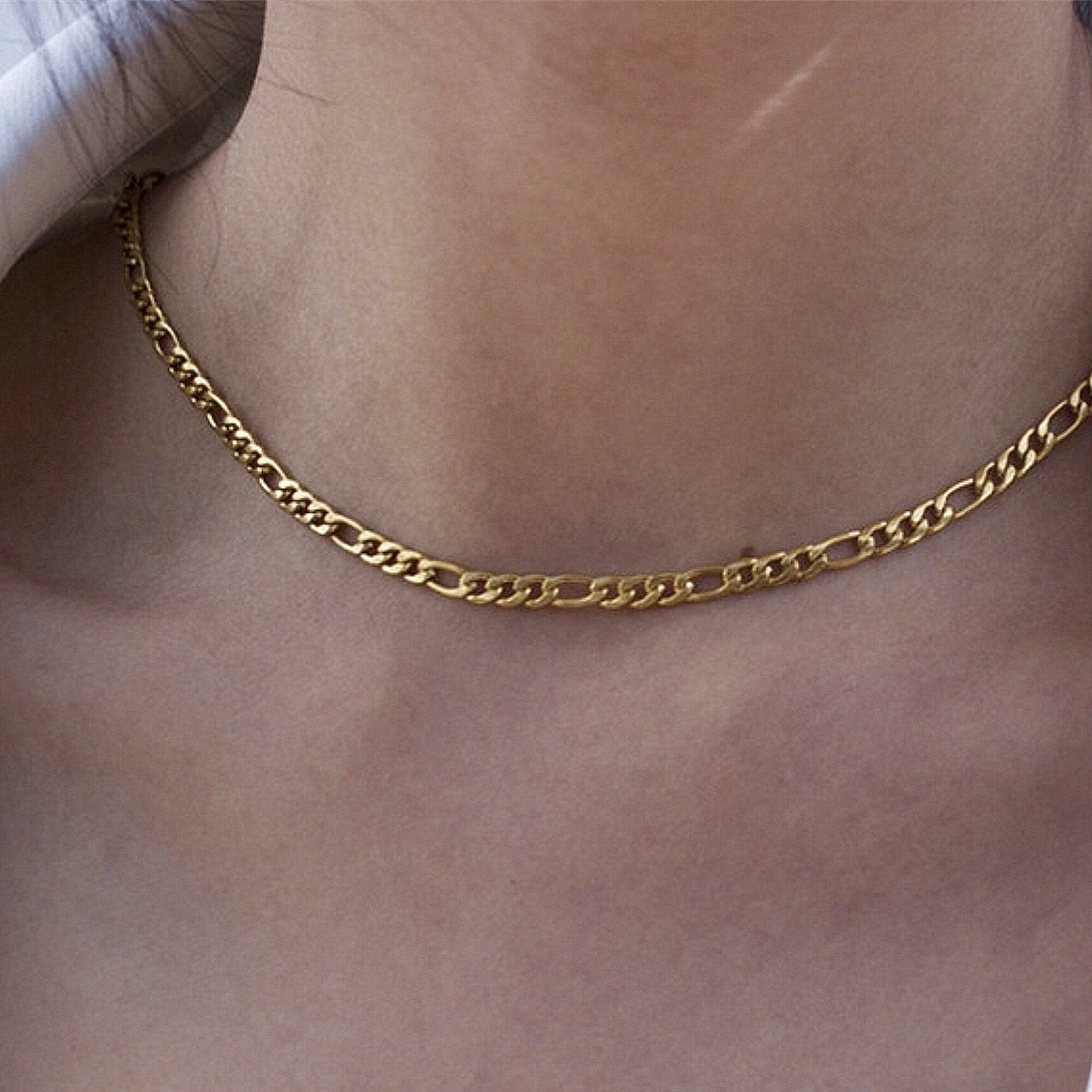 Fin et délicat, Ce joli collier ras de cou chaîne gourmette figaro or, entièrement doré à l’or fin, Il est parfait pour porter avec nos autres colliers !