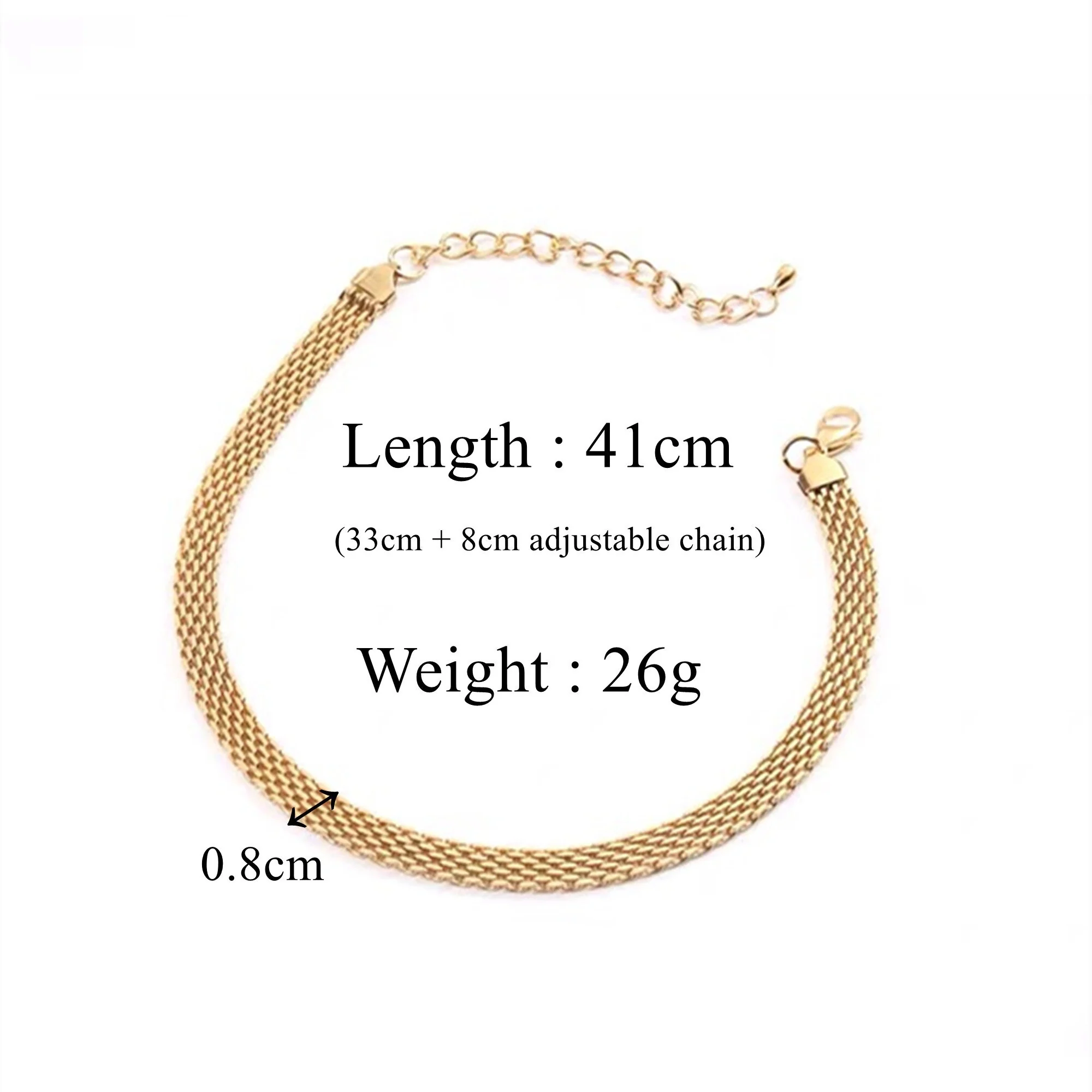 Longueur : 41 cm (33cm+8cm de chaîne réglable)