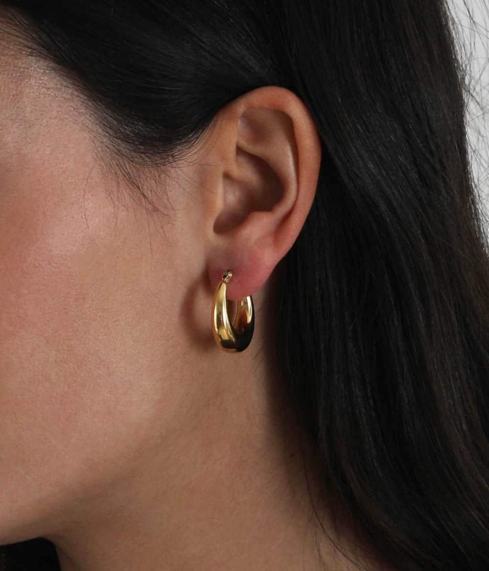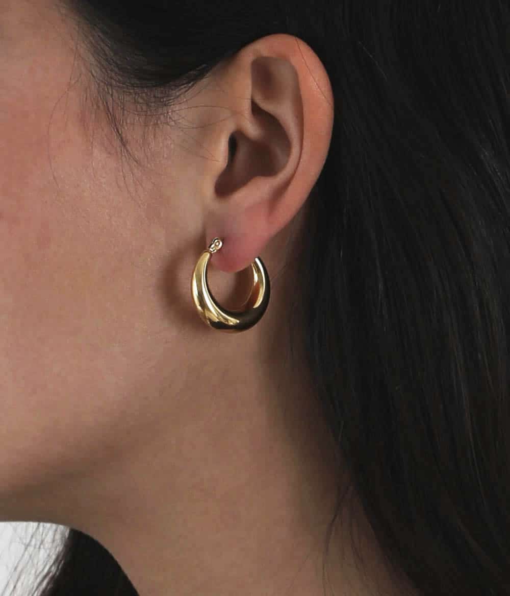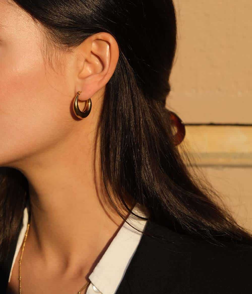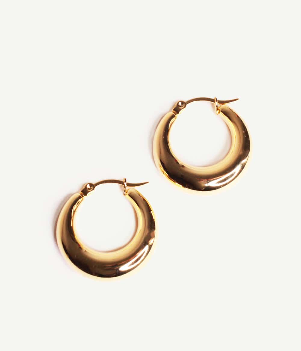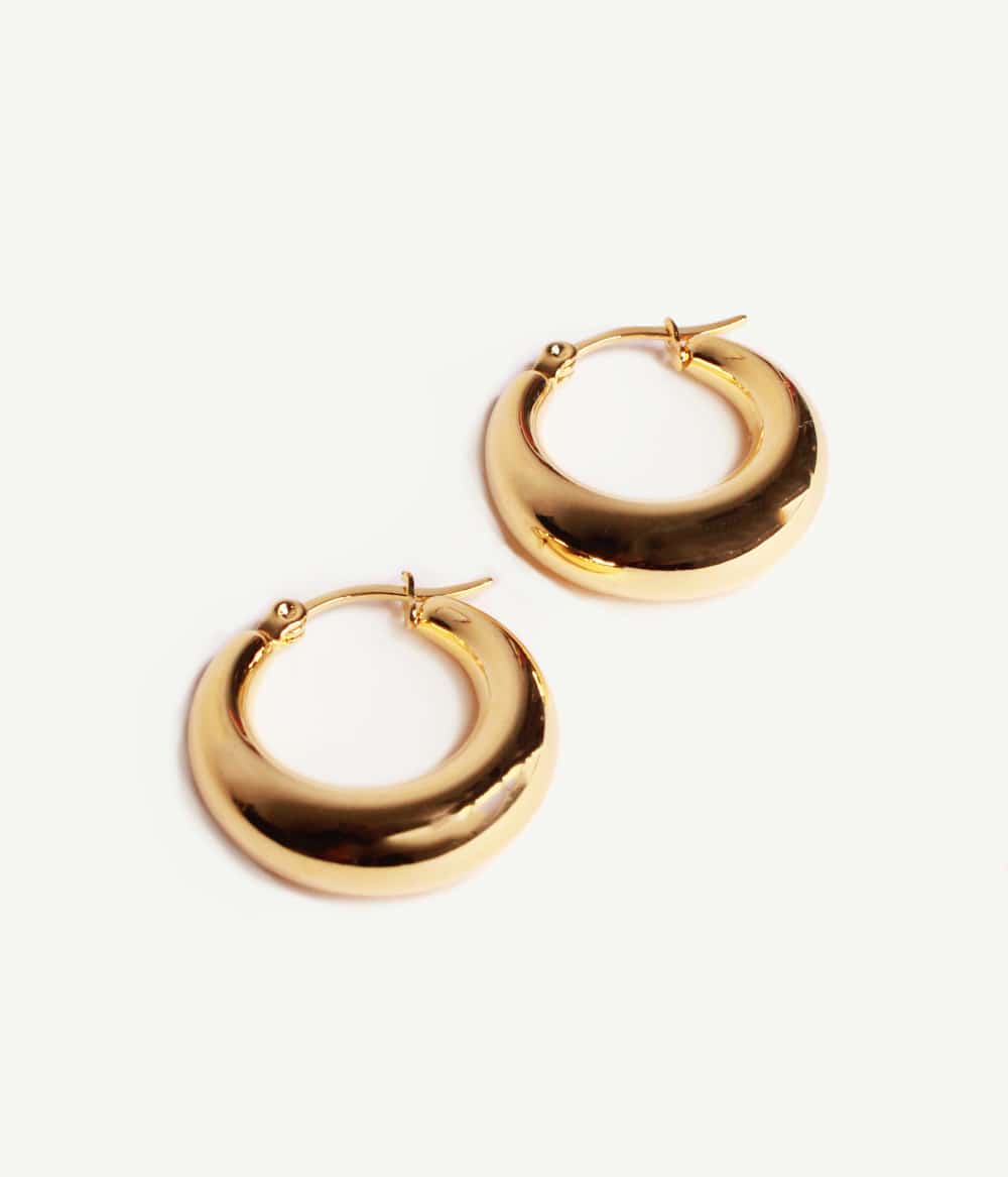 De petites créoles pleines dorées et arrondies, qui s’affinent au niveau du fermoir. Un classique revisité à porter sans modération.