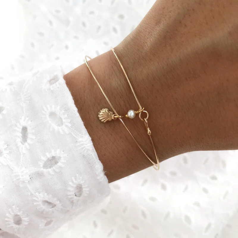 - Bracelets composés d’une petite perle d’eau douce et d’un petit coquillage