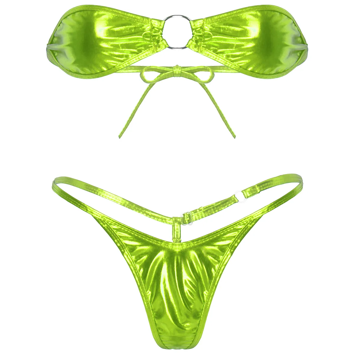 Ce maillot de bain irisé micro bikini string ficelle en taille unique est conçu pour être vu quelle que soit la couleur que vous choisirez, vous ne passerez pas inaperçue. Il est doté d’un haut bandeau et d’un bas string à la ficelle réglable. Plutôt conseillé aux petites poitrines, il saura mettre vos courbes en valeur .