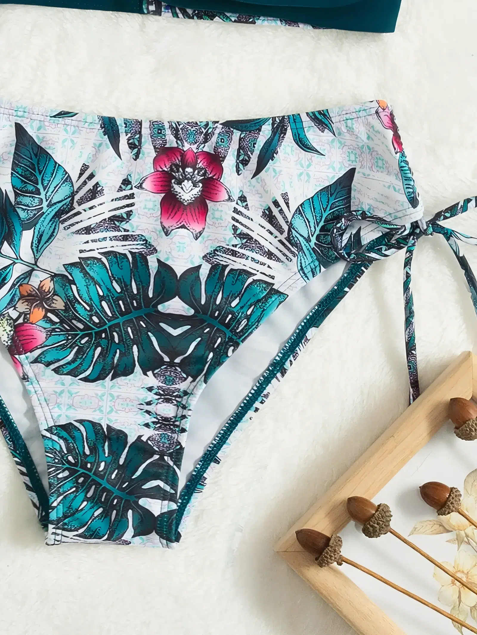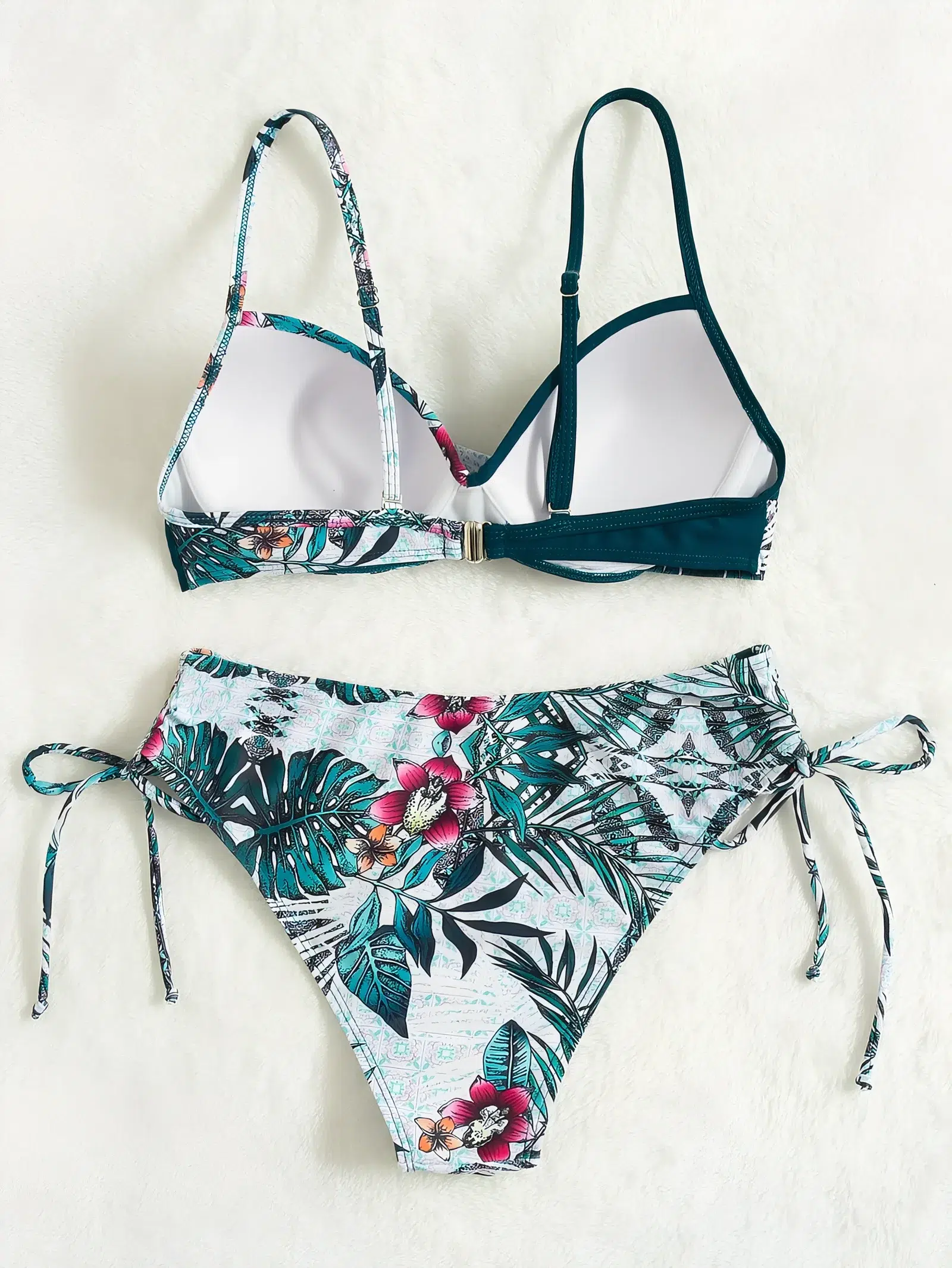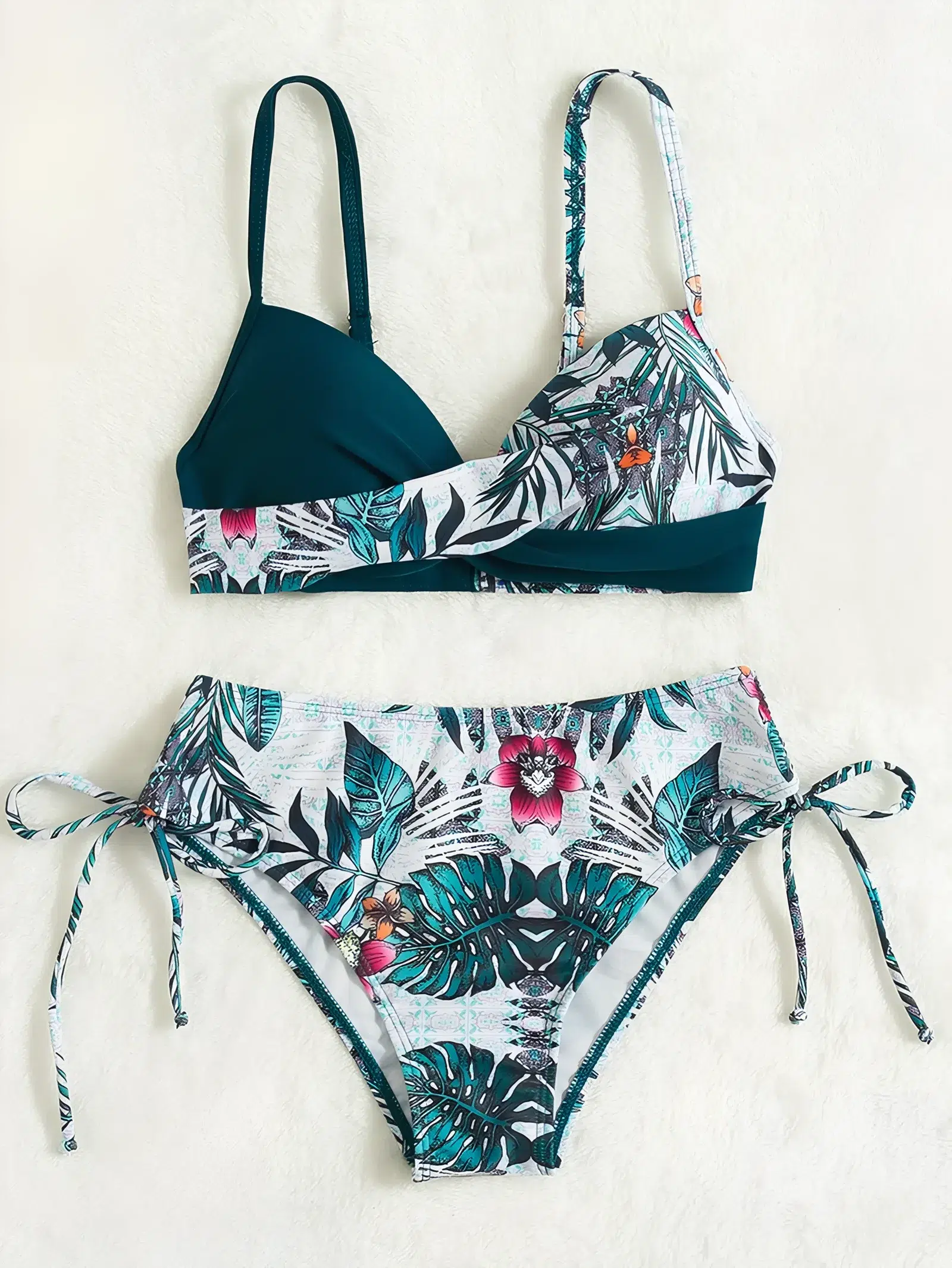 Avec son mélange de vert foncé et de motifs floraux multicolores, ce bikini évoque l’énergie vibrante de la nature, rendant chaque moment à la plage encore plus mémorable.