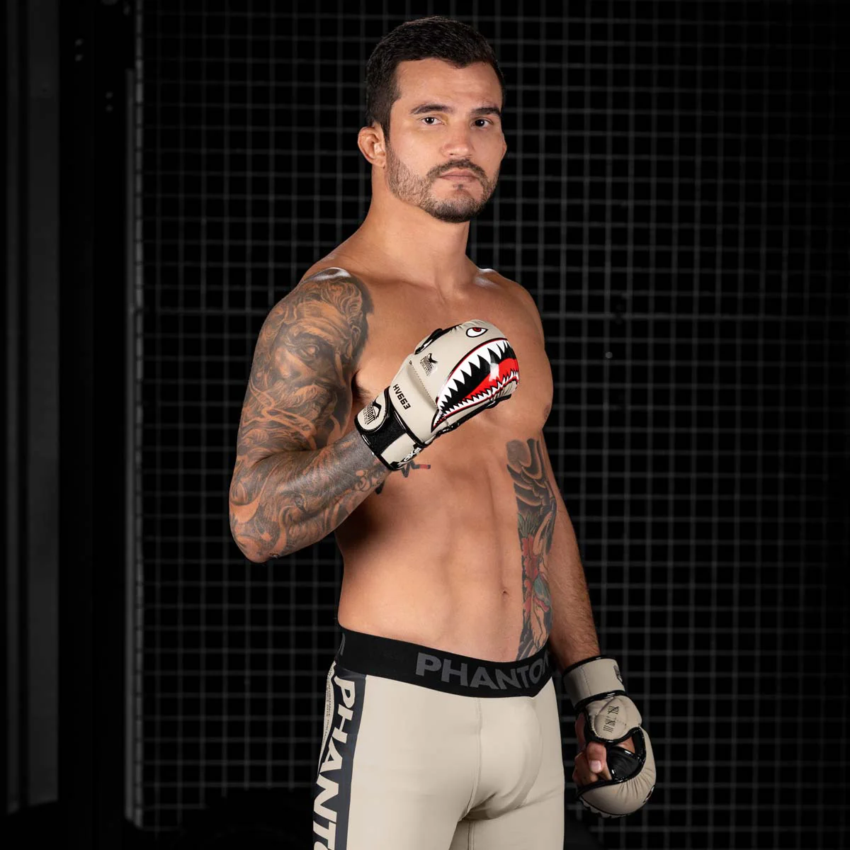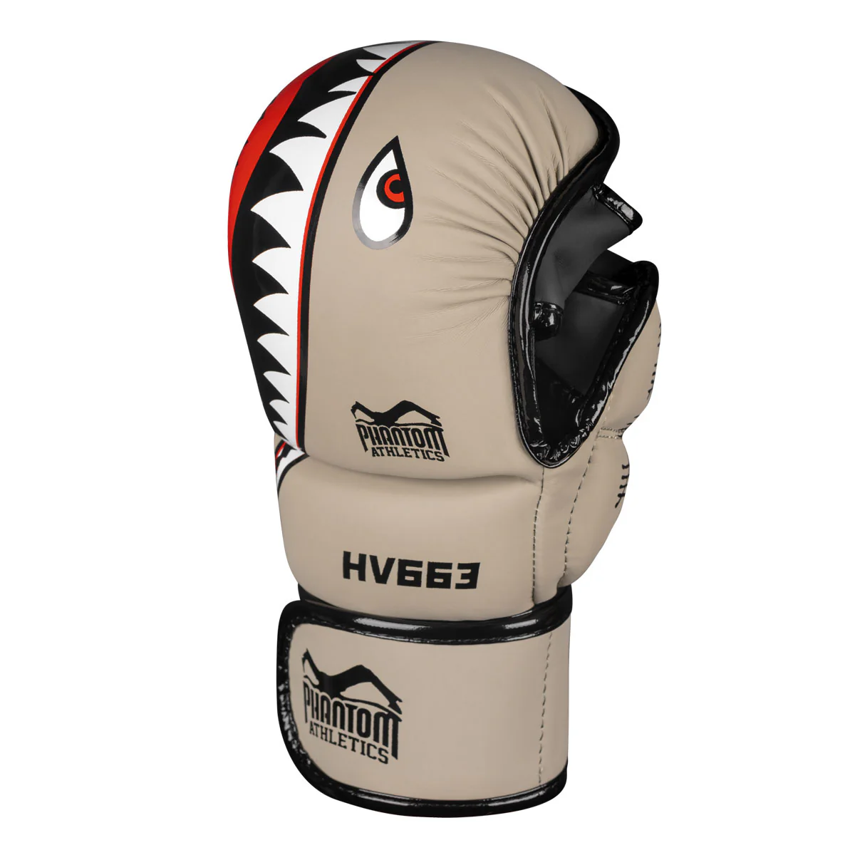 Die MMA Sparrings Handschuhe der FIGHT SQUAD Kollektion stechen hervor durch ein auffälliges Design im Stil alter « Shark Mouth » Kampfflugzeuge.