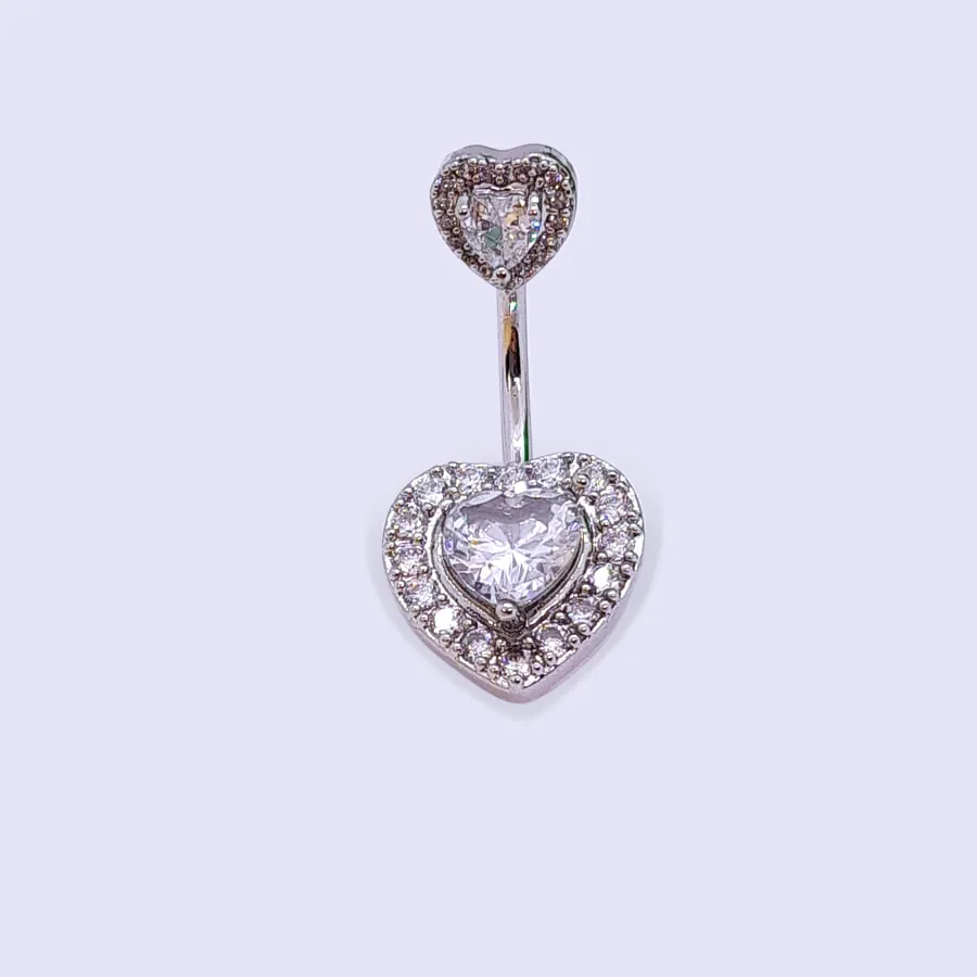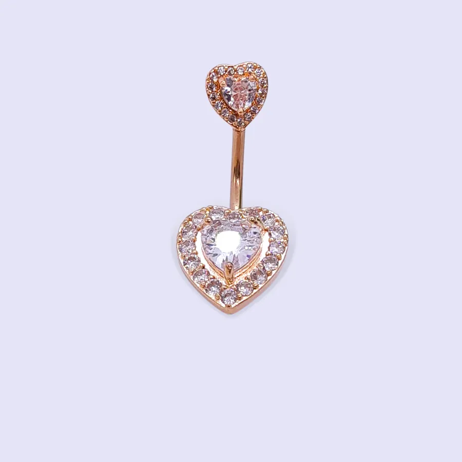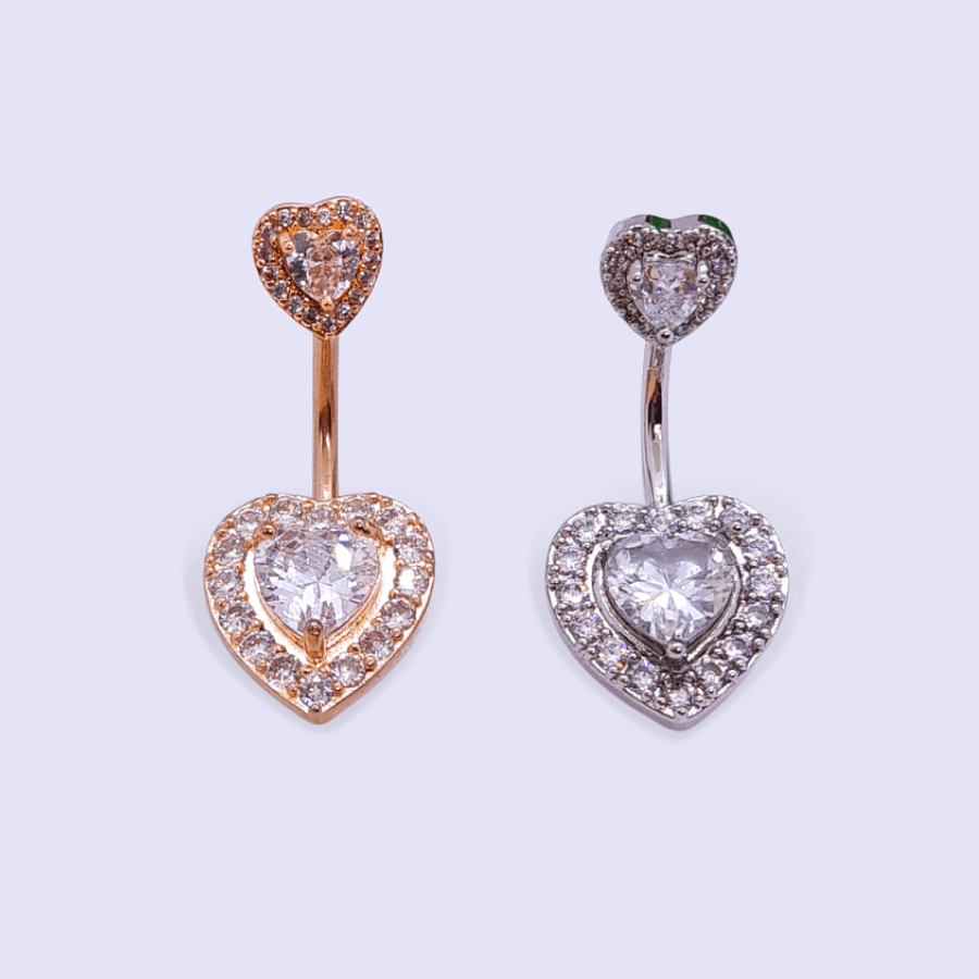 Piercing LYNA, piercing nombril en acier inoxydable argenté ou rose gold avec attache et pendentif en forme de cœur incrustés d’oxydes de zirconium.
