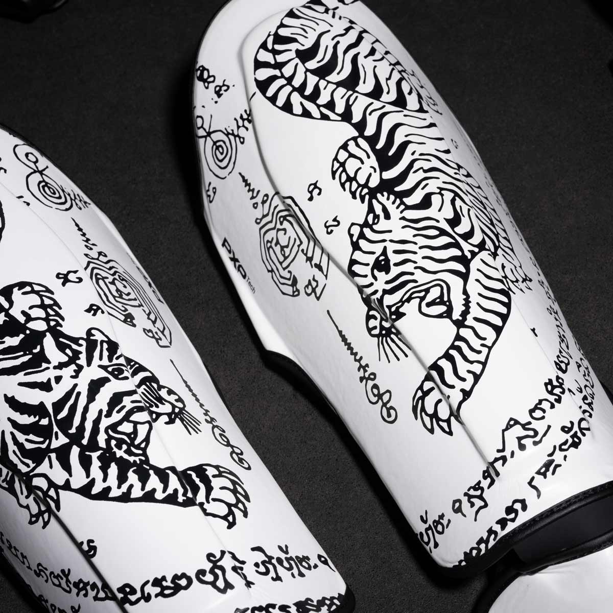 Ein besonderes Highlight ist das Design im Stil thailändischer Sak-Yant/Yantra Tätowierungen mit Tigern und thailändischen Schriftzeichen.