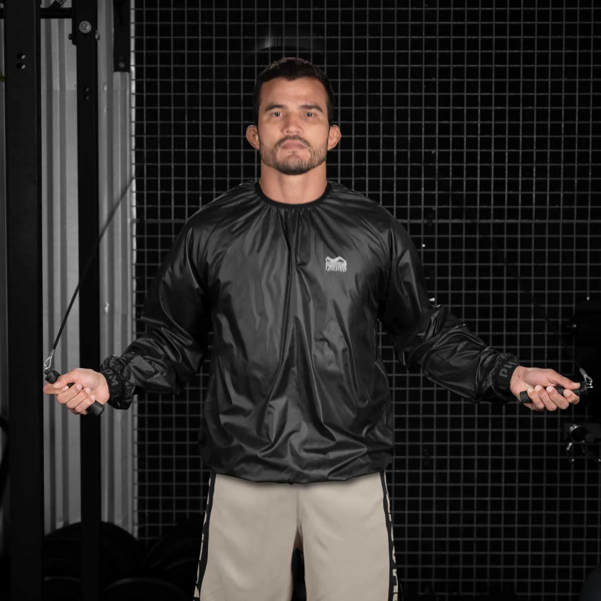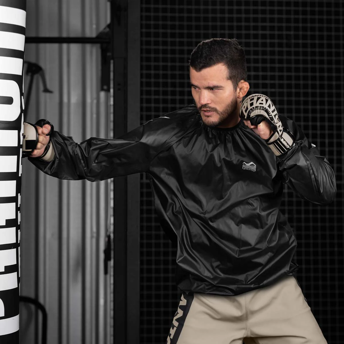Schwitzjacken werden verwendet, um speziell vor Wettkämpfen Gewicht zu machen. Das luftdichte Material unterstützt dabei die Schweißbildung, der Körper verliert Wasser und das Gewicht geht schneller nach unten. Der Bund an den Armen ist aus einem elastischen Band, welches nicht nur sehr bequem ist, sondern auch hier für eine ordentliche Abdichtung sorgt.