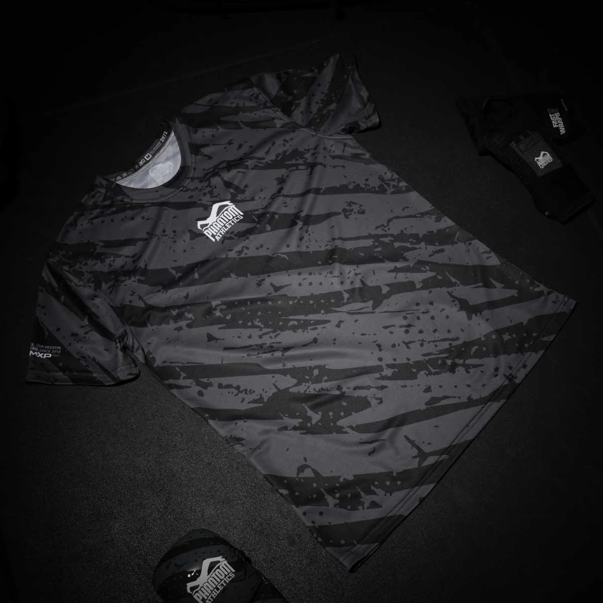 Das Phantom EVO Shirt ist aus dem bewährten MXP-Tech Material gefertigt, das speziell für intensive Trainingseinheiten entwickelt wurde. Es bietet eine perfekte Kombination aus Atmungsaktivität, Feuchtigkeitsregulierung und Haltbarkeit. Dank der reißfesten und elastischen Struktur passt sich das Shirt optimal an deinen Körper an, ohne die Bewegungsfreiheit einzuschränken. Ideal für Kampfsportarten wie MMA, Muay Thai oder Grappling, sorgt das Shirt für ein trockenes und leichtes Tragegefühl, selbst bei anspruchsvollen Workouts. Mit dem stylischen Camo-Tiger-Design profitierst du dabei auch von einem sportlichen, modernen Look.